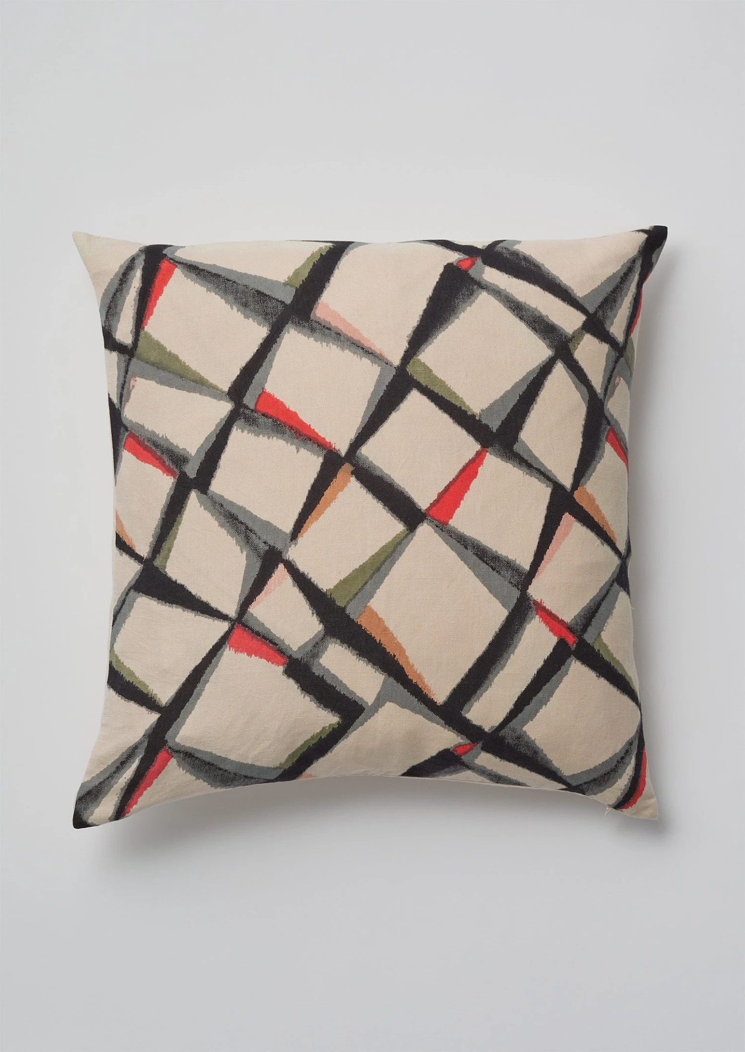 Cushion cover featuring a geometric screen-printed pattern that subtly speaks to the harlequin influences running through our collection. With a linen and cotton-blend front, plain cotton reverse and concealed side-seam zip. To fit a size 46 x 46cm Wool Cushion Pad.