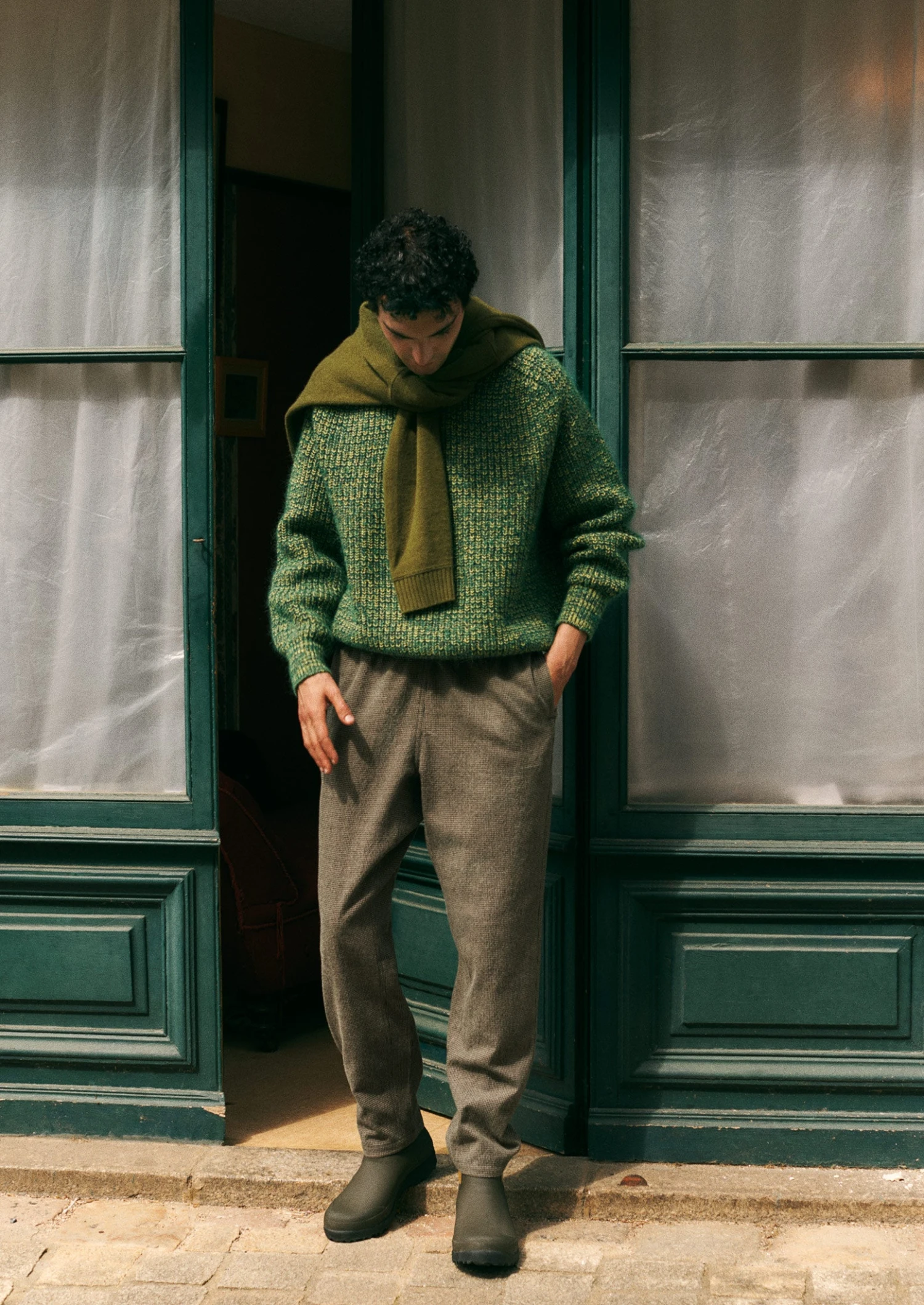 Our Alfie trousers are crafted from cotton and wool woven in Italy with a micro houndstooth pattern. Shaped with an elasticated drawstring waist for comfort, falling to tapered legs with inner panels, then finished with back patch pockets. Part of our Menswear collection.