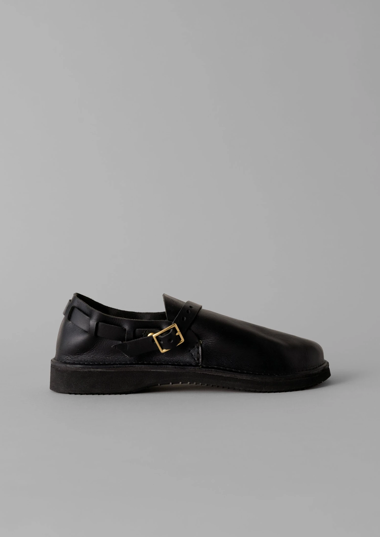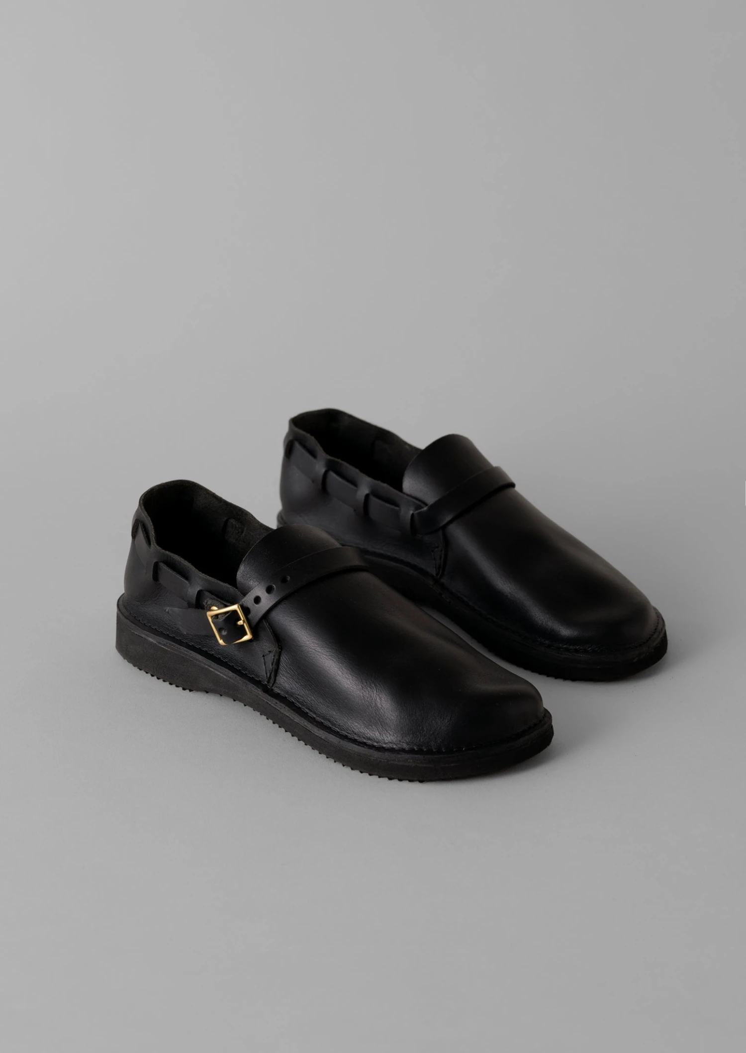 Understated shoes handcrafted in upstate New York by Aurora from fully traceable leather, which is vegetable-tanned. With a T-bar strap which weaves through the heel panel, set on a low rubber Vibram sole. If you usually wear an EU half size, we suggest you take a size up.