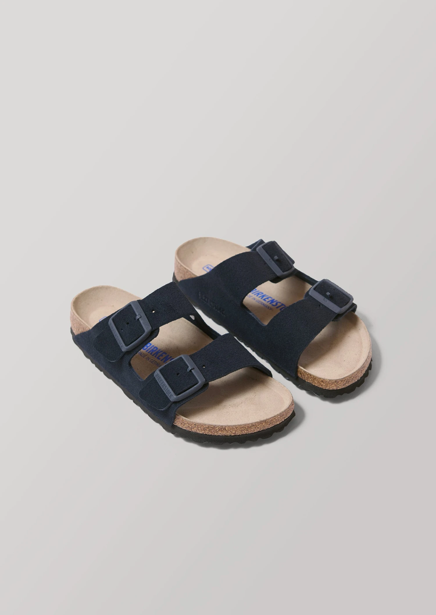 Suede. Adjustable straps. Logo-engraved metal buckles. Cork footbed. EVA sole.