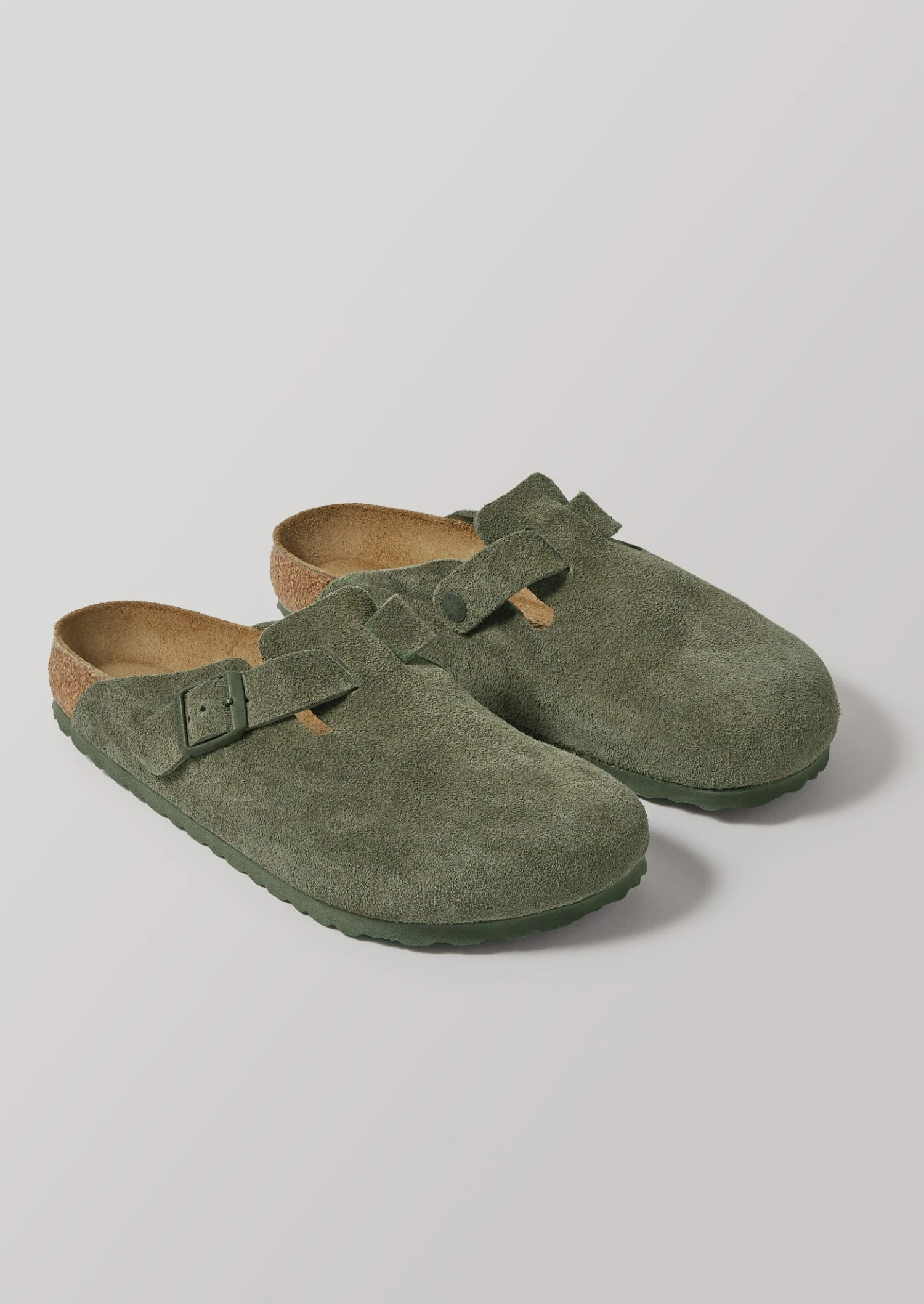 Comfortable clogs, a signature style by Birkenstock introduced in 1979. Crafted in Germany from soft suede to a round-toe shape, then set on a moulded cork footbed for comfort throughout the day.