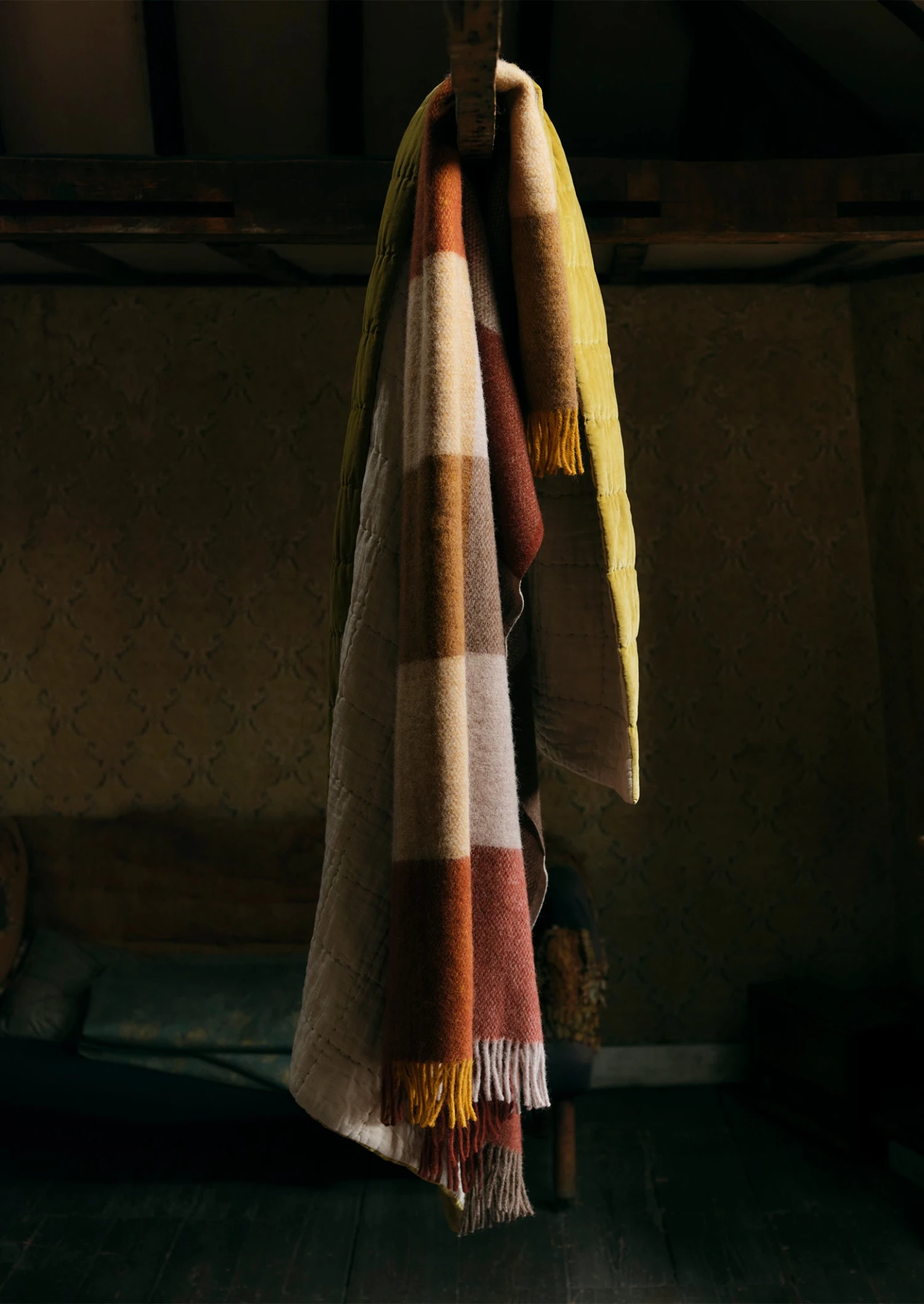 Soft checked blanket made from lambswool which is traceable to each specific sheep farm in New Zealand. Crafted by Swedish family-run business Klippan, which traces back to 1879. The wool is spun, dyed and woven in the same factory in Europe. Patterned with bold, large colour-block checks and finished with fringed edges.