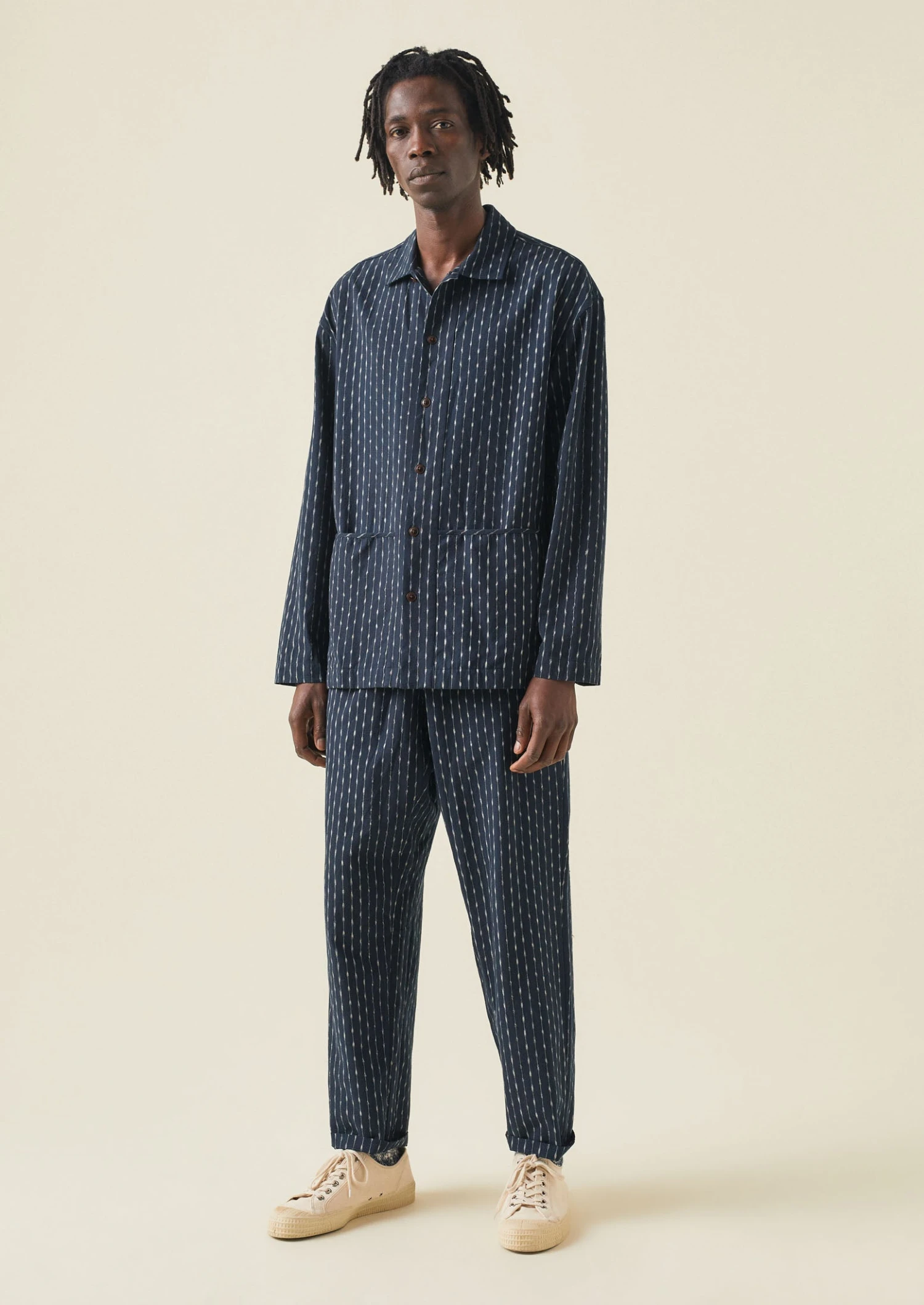 Cotton Ikat Lounge Shirt | Slate/Ecru