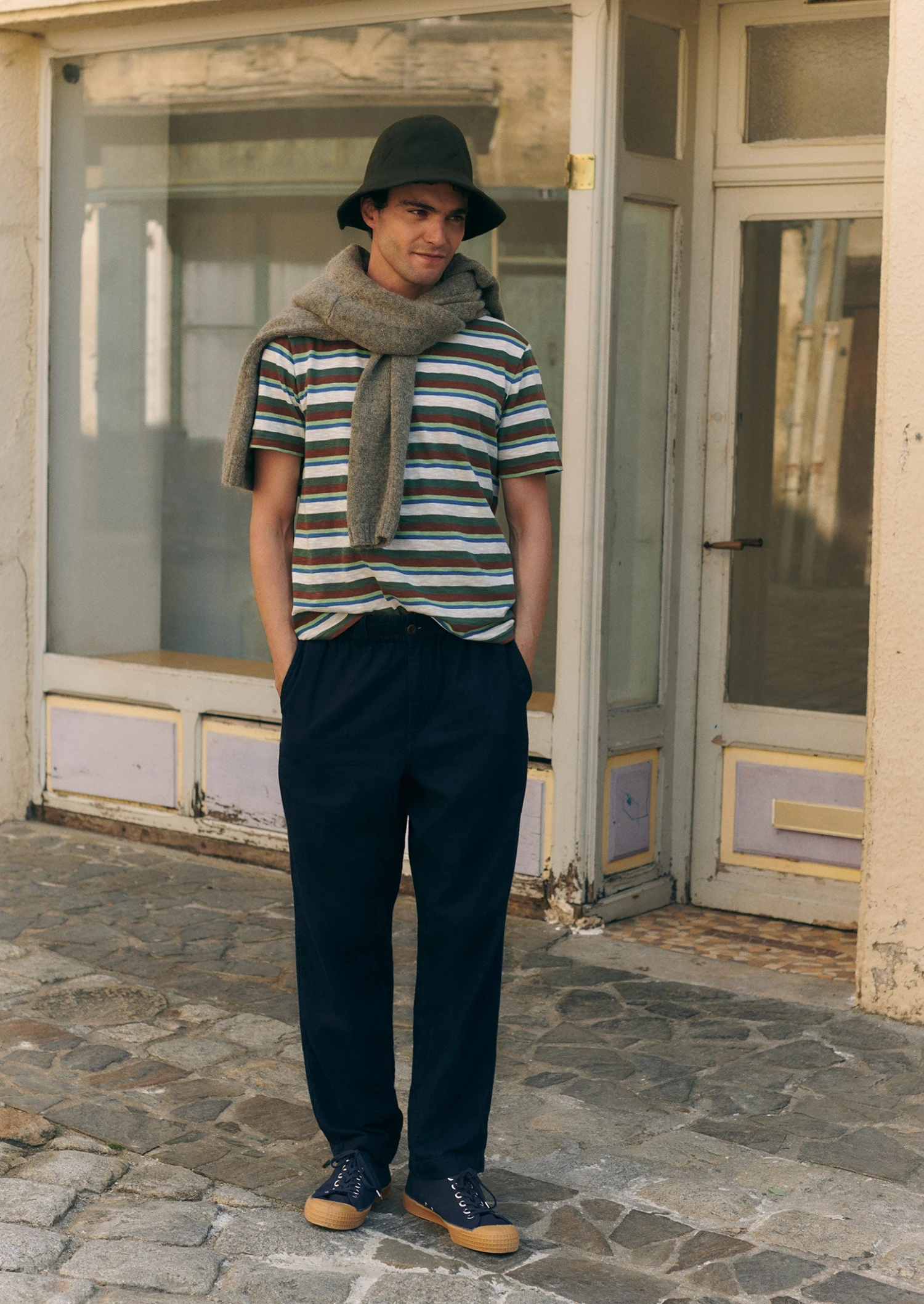 Our trousers are crafted from cotton denim dyed and woven on traditional shuttle looms in Ibara City in Okayama, Japan. Woven to a double-sided cloth, with a chambray finish to the inside.