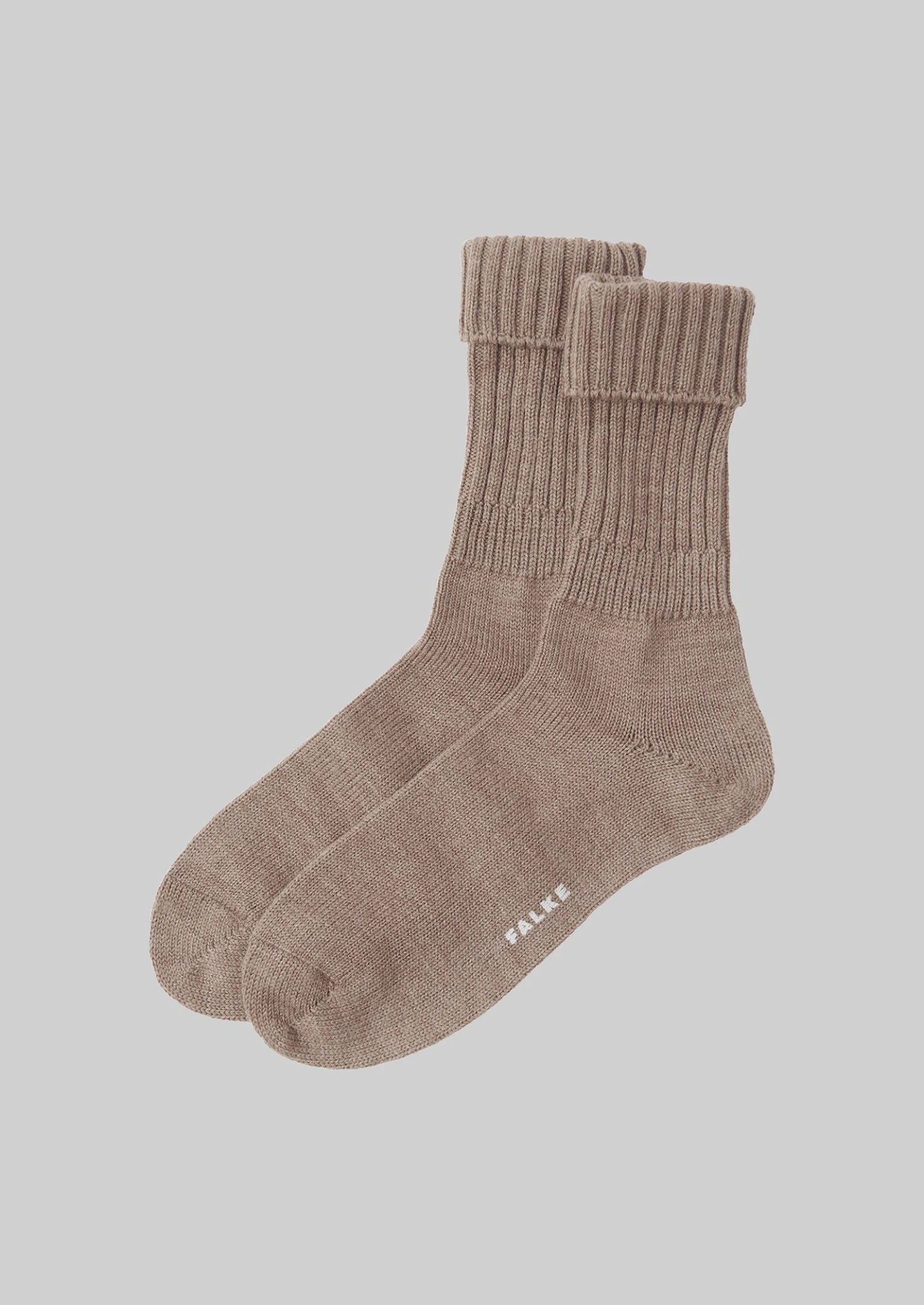Cosy and warm virgin wool blend. Chunky ribbed. To be rolled over at the cuff or as you will.