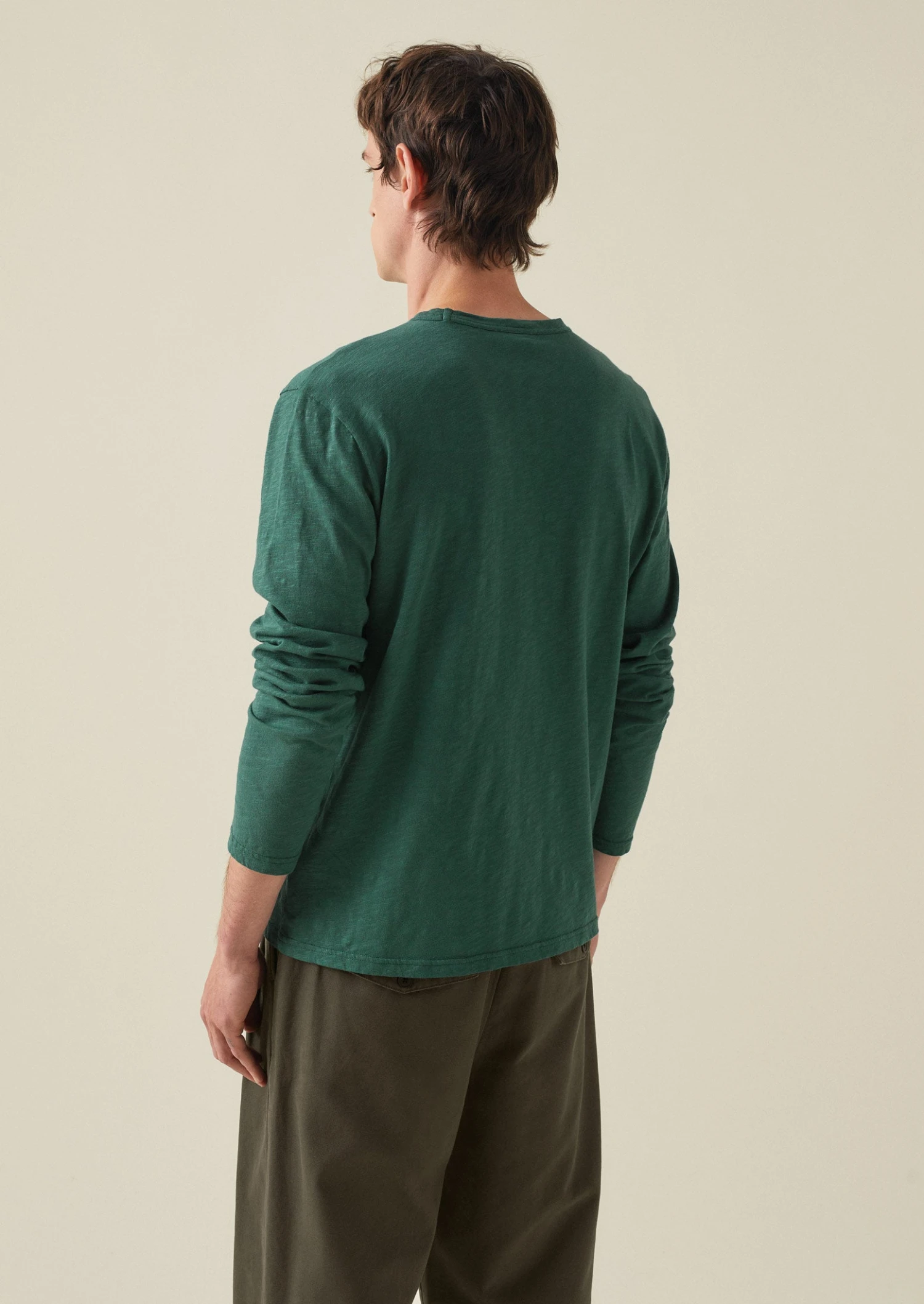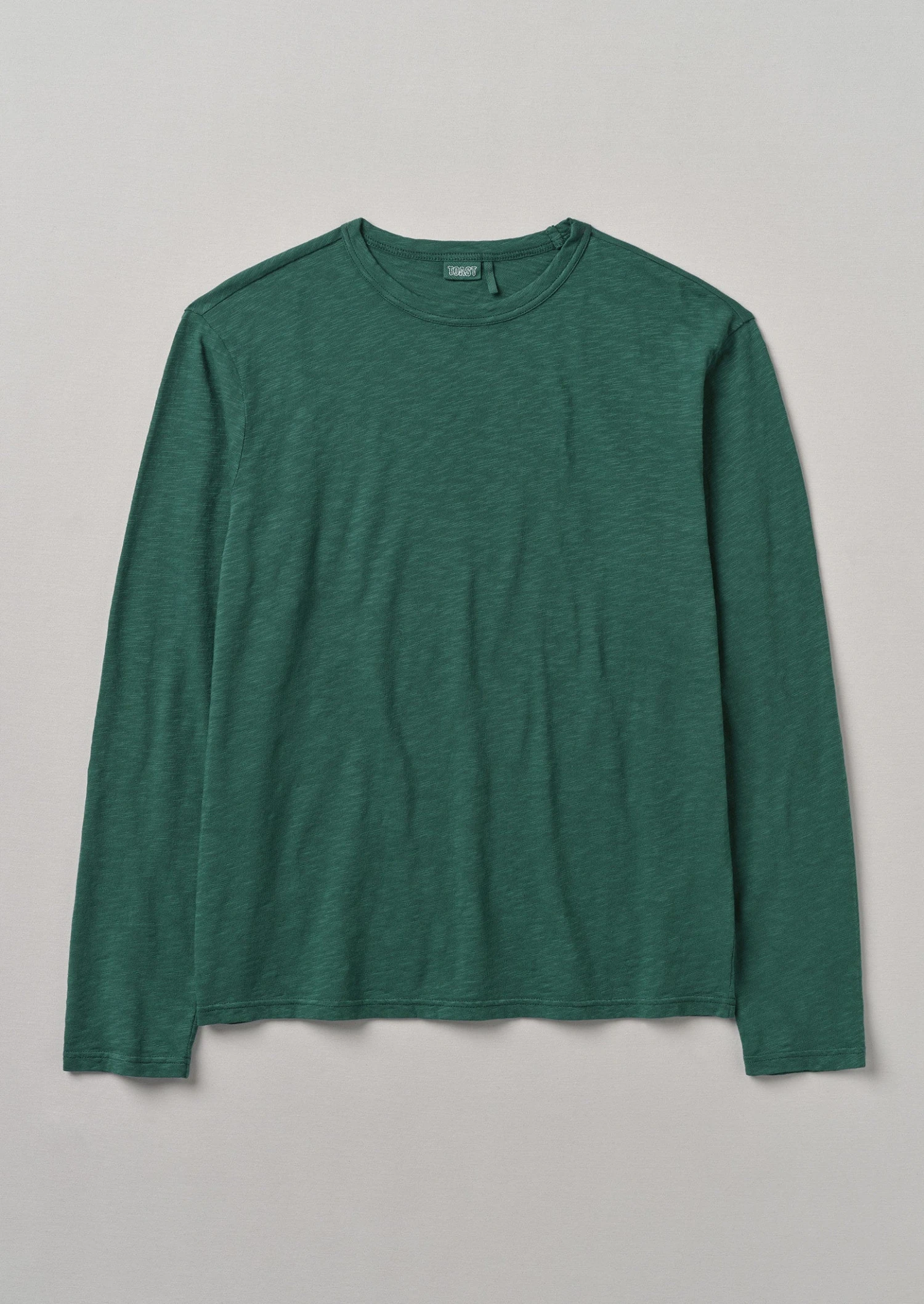 Lightweight slubby cotton jersey. Garment-dyed. Crew neck. Long sleeves.