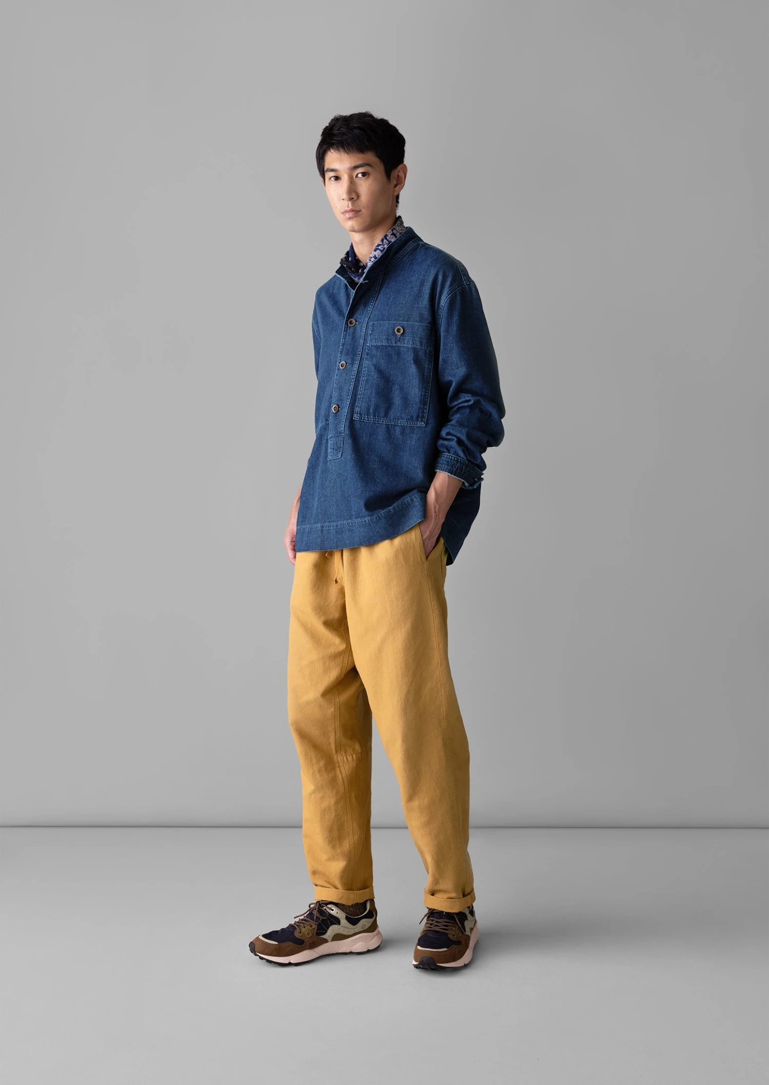 Our shirt features an internal patch pocket with visible external stitching for a workwear slant. Crafted from cotton denim containing recycled fibres to a boxy shape with a stand collar and half placket, inspired by nautical pull-over styles. Part of our Menswear collection.