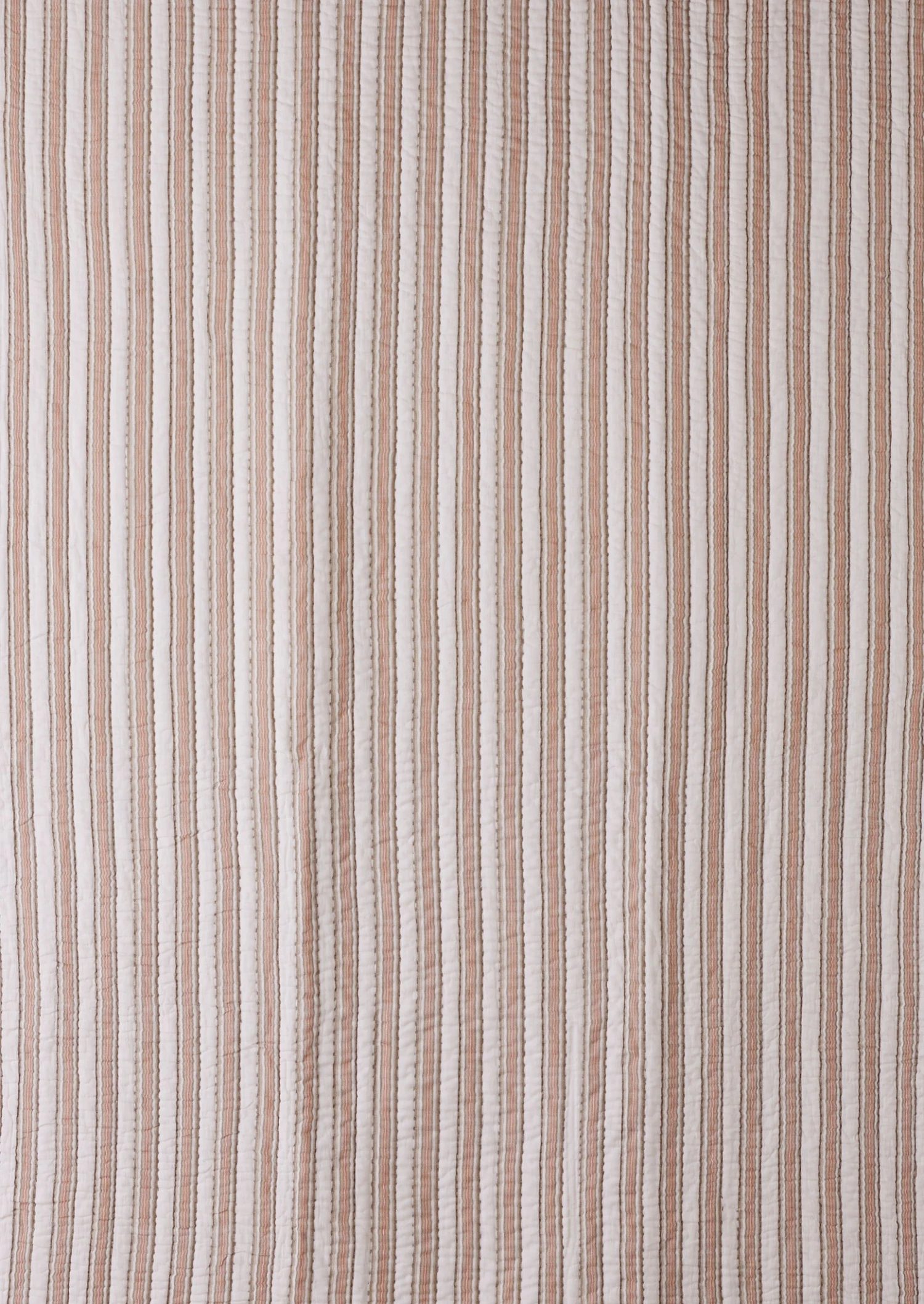 Reversible handwoven quilt made from soft yarn-dyed striped cotton, woven and then quilted by artisans in Delhi. Filled with cotton wadding, then finished with piped edges.