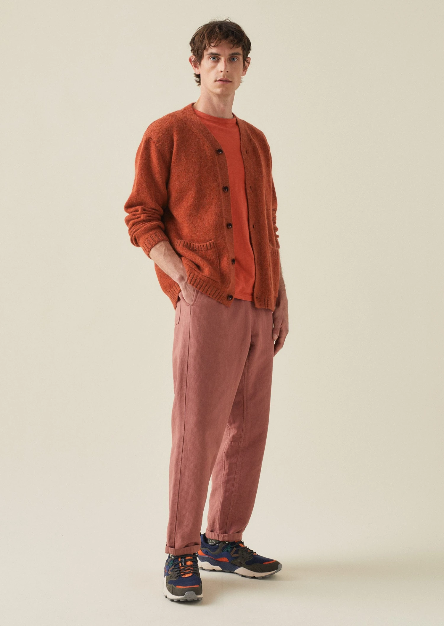 Our cardigan has a high V-neck which is counterbalanced by the effortless dropped sleeves. Knitted from a wool blend containing lofty mohair to a relaxed shape, then accented by corozo buttons. Part of our Menswear collection.