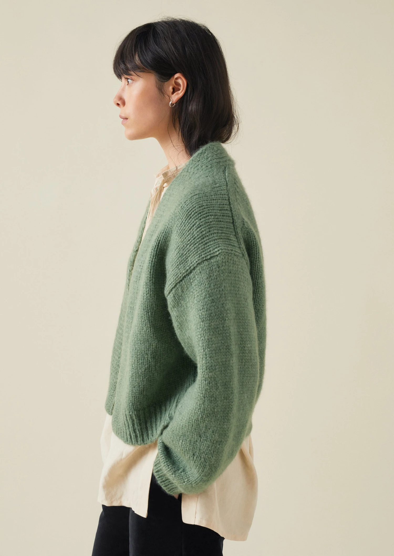 A rounded shape heightens the cocooning feel of our lofty cardigan. Knitted from alpaca, merino and cotton with set-back shoulders and full balloon sleeves for carefree layering.