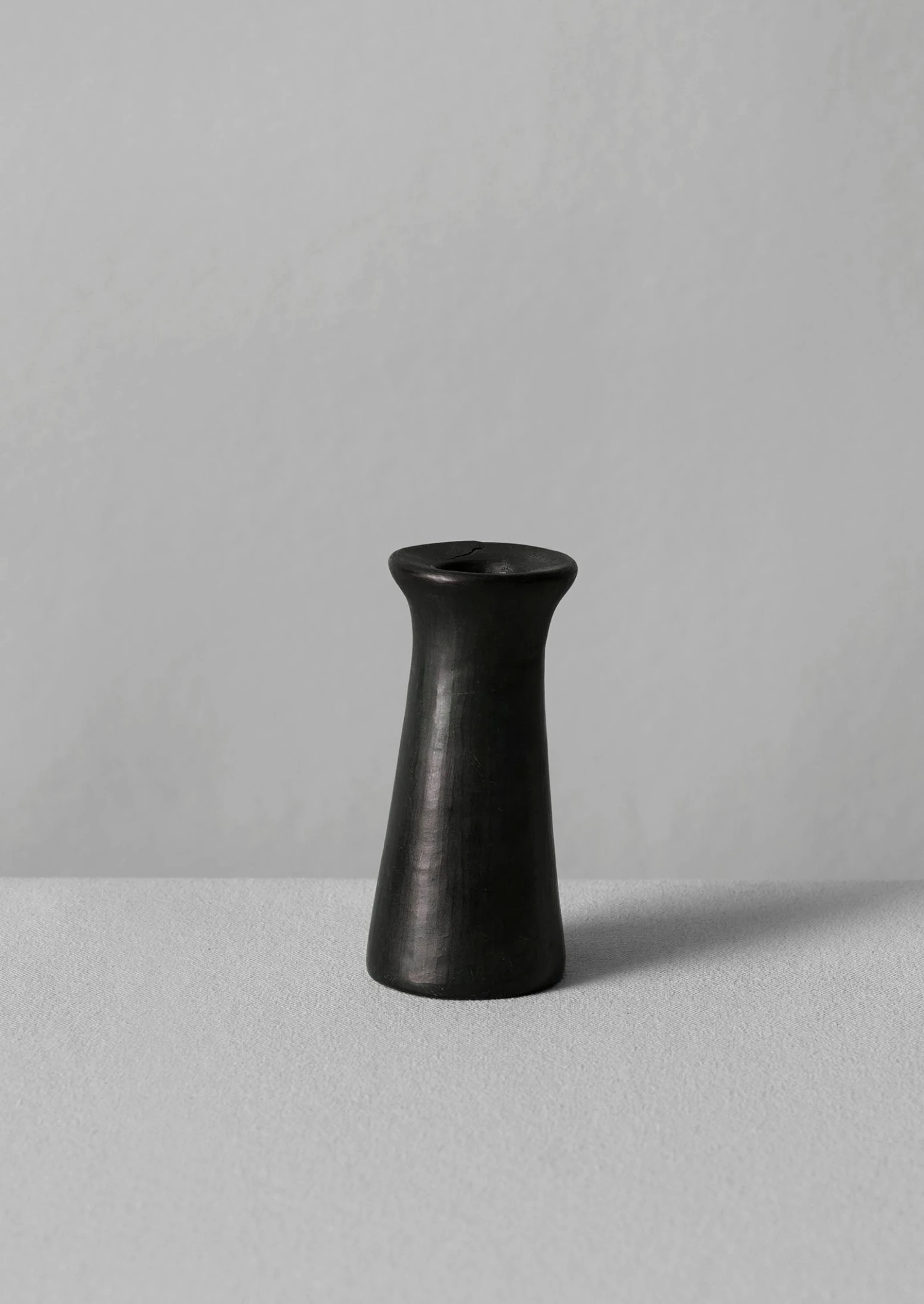 Longpi pottery is made using an age-old technique unique to just two villages in north-east India. Made by mixing ground black stone with locally found clay, Longpi pieces are hand built, left in the sun to dry out and then woodfired. The burnished finish creates a natural protective seal, whilst characterising Longpi with its deep black patina. Slender shape which tapers inwards before the flared top. Being handmade, each will vary slightly in shape and size.
