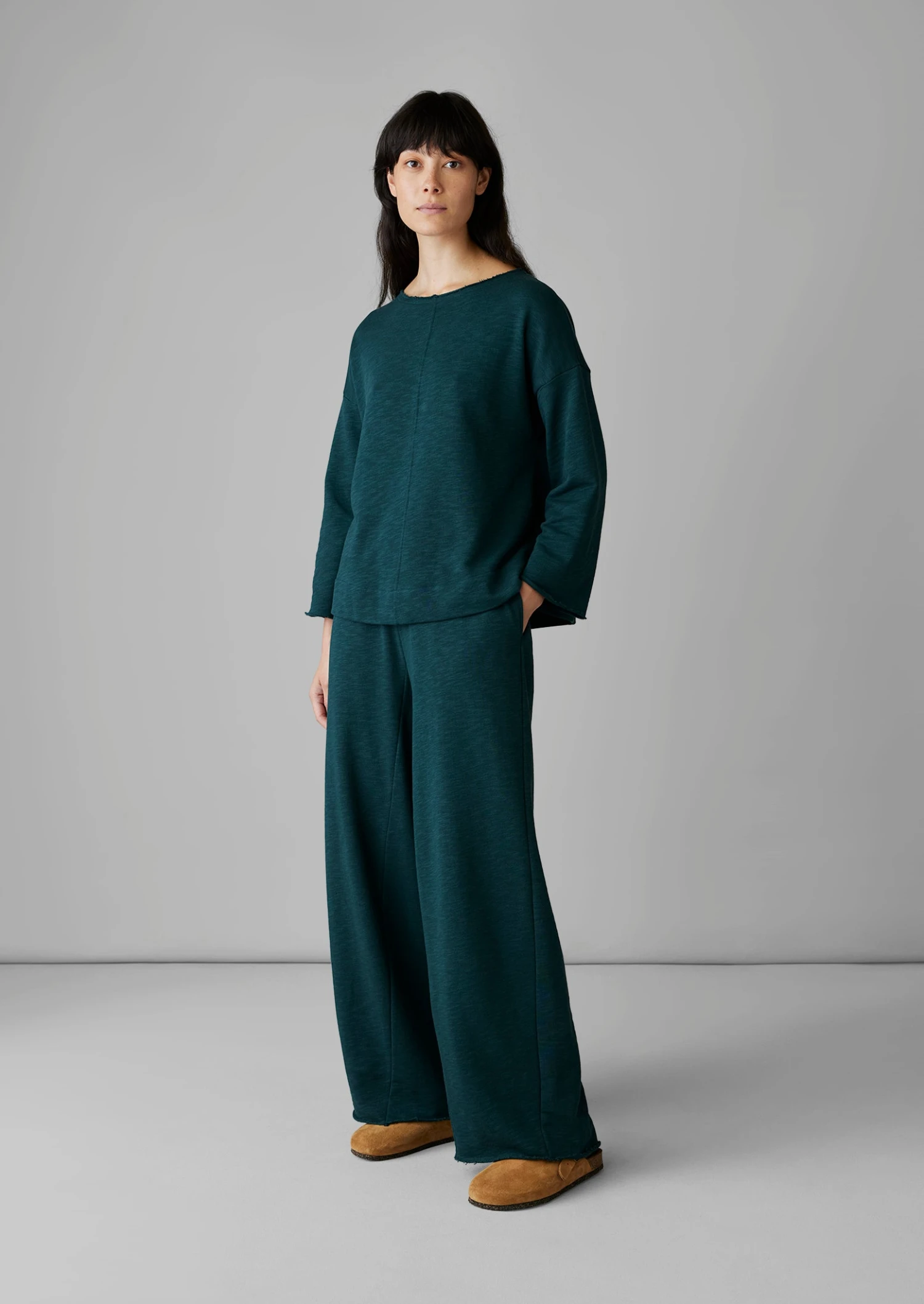 Raw edges at the neck and cuffs juxtapose the defined seams running down the front and back of our sweater. Crafted from relaxed loopback cotton jersey to an easy shape with dropped sleeves, then finished with a cotton herringbone hanging loop at the nape.