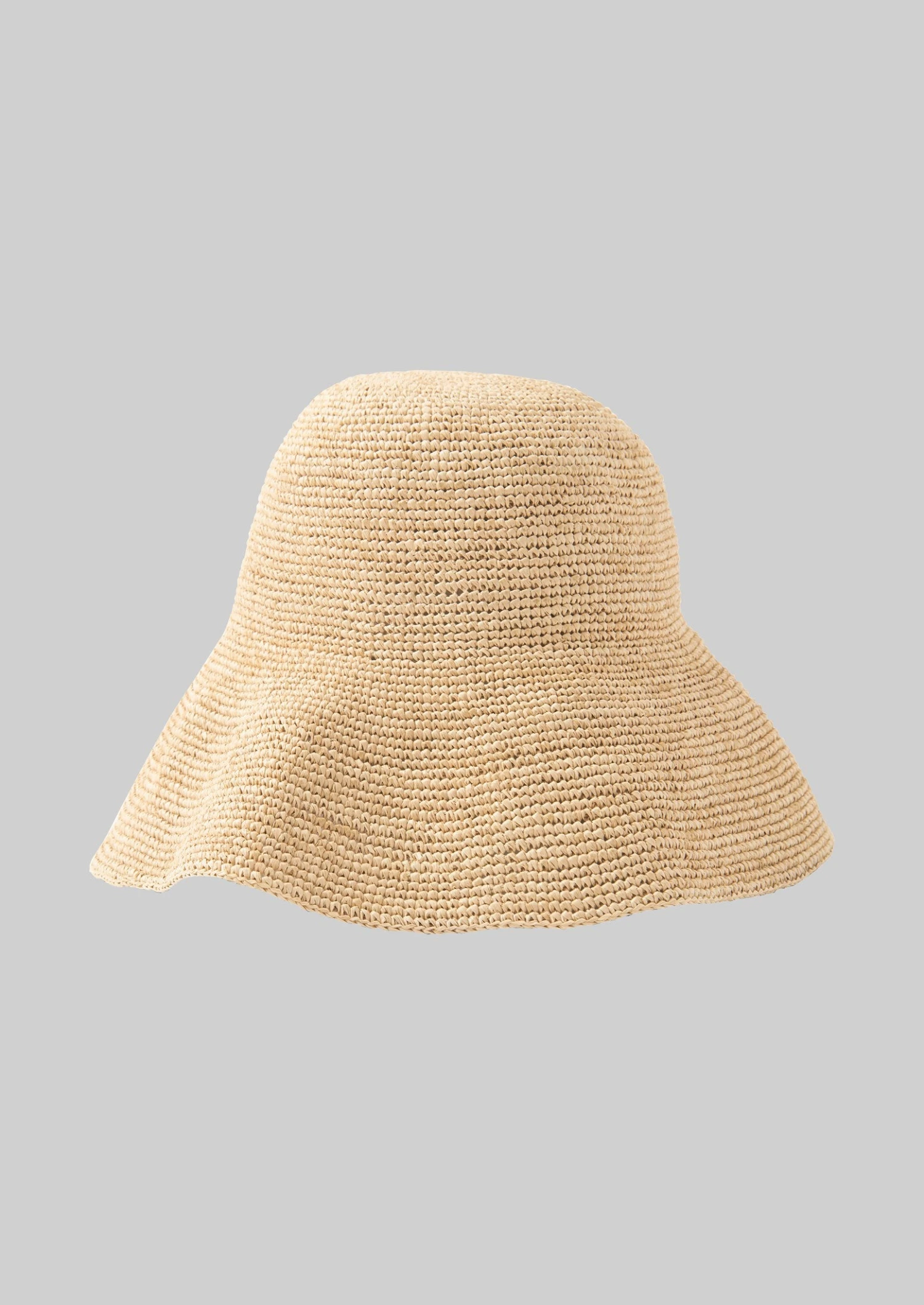 Summery hat handmade by local artisans in Madagascar for Maison N.H. Paris. Crafted from raffia then intricately woven to a cloche silhouette.
