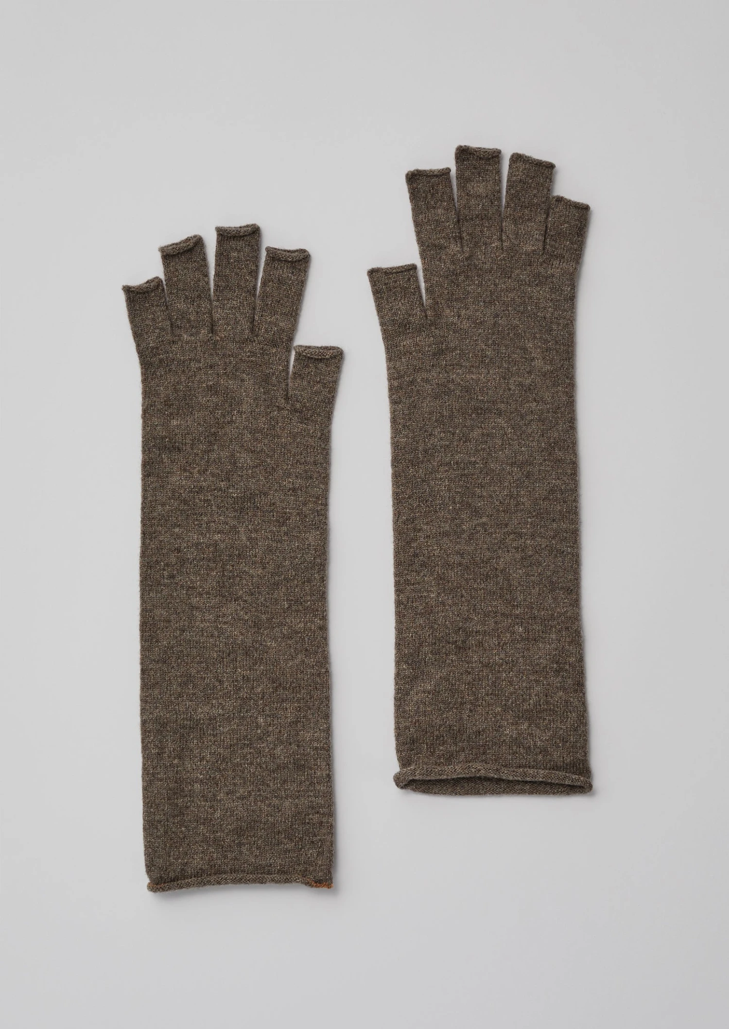 Tipless gloves crafted by Nishiguchi Kutsushita, a Japanese company established in 1950. Made in a small workshop using old knitting machines and finished with a rolled edge at the elongated cuff. Perfect for using your phone when out and about.