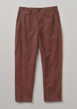 Cotton herringbone. Garment-dyed. Belt loops. Side ticket pocket. Side pockets. Back patch pockets. Tapered legs. Internal hanging loop. Zip and corozo button.