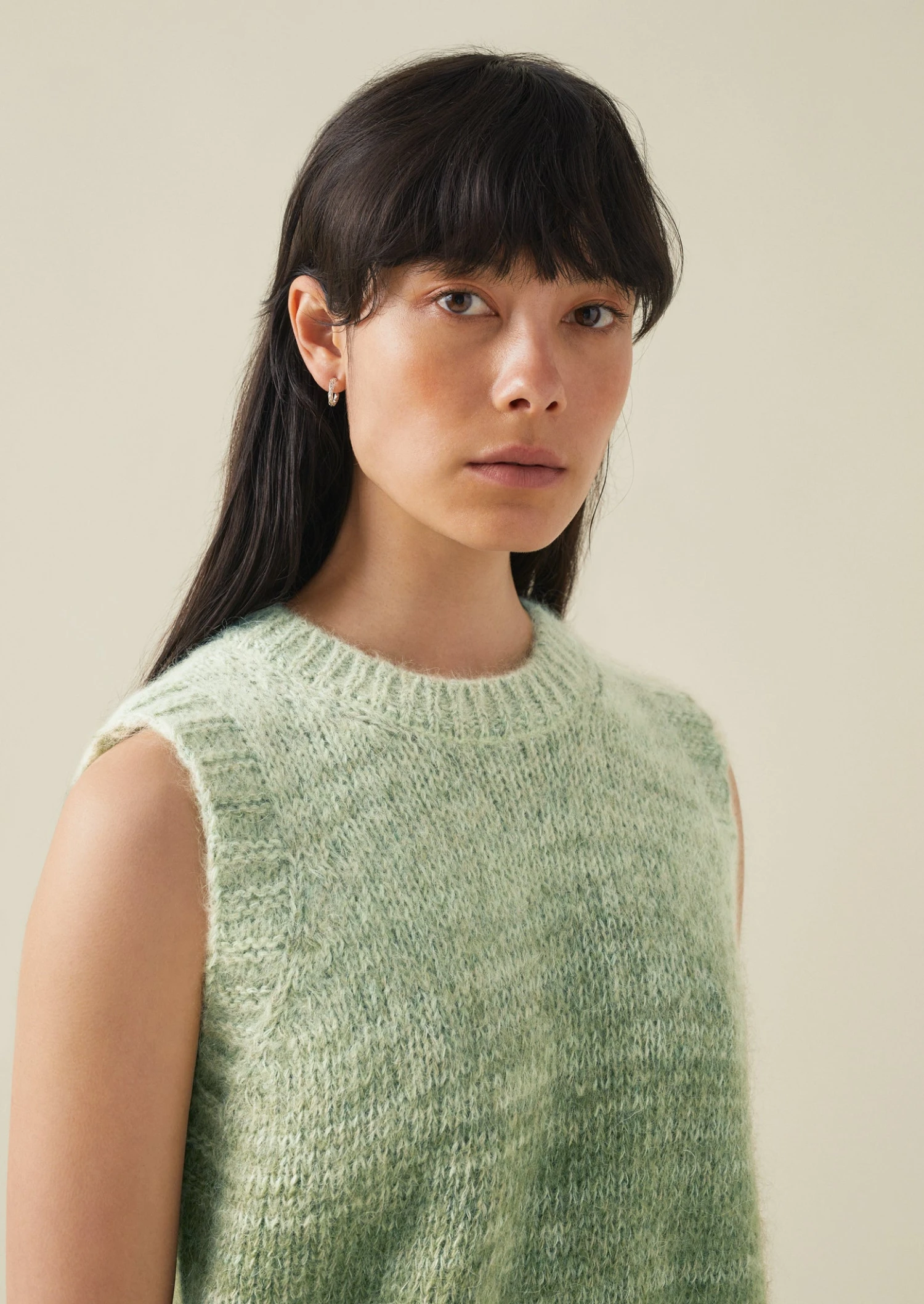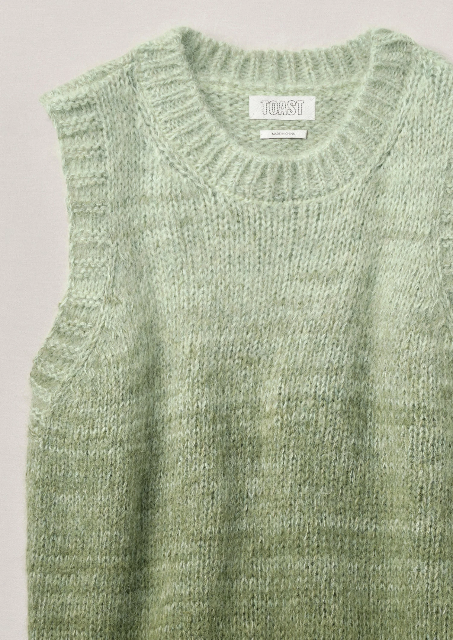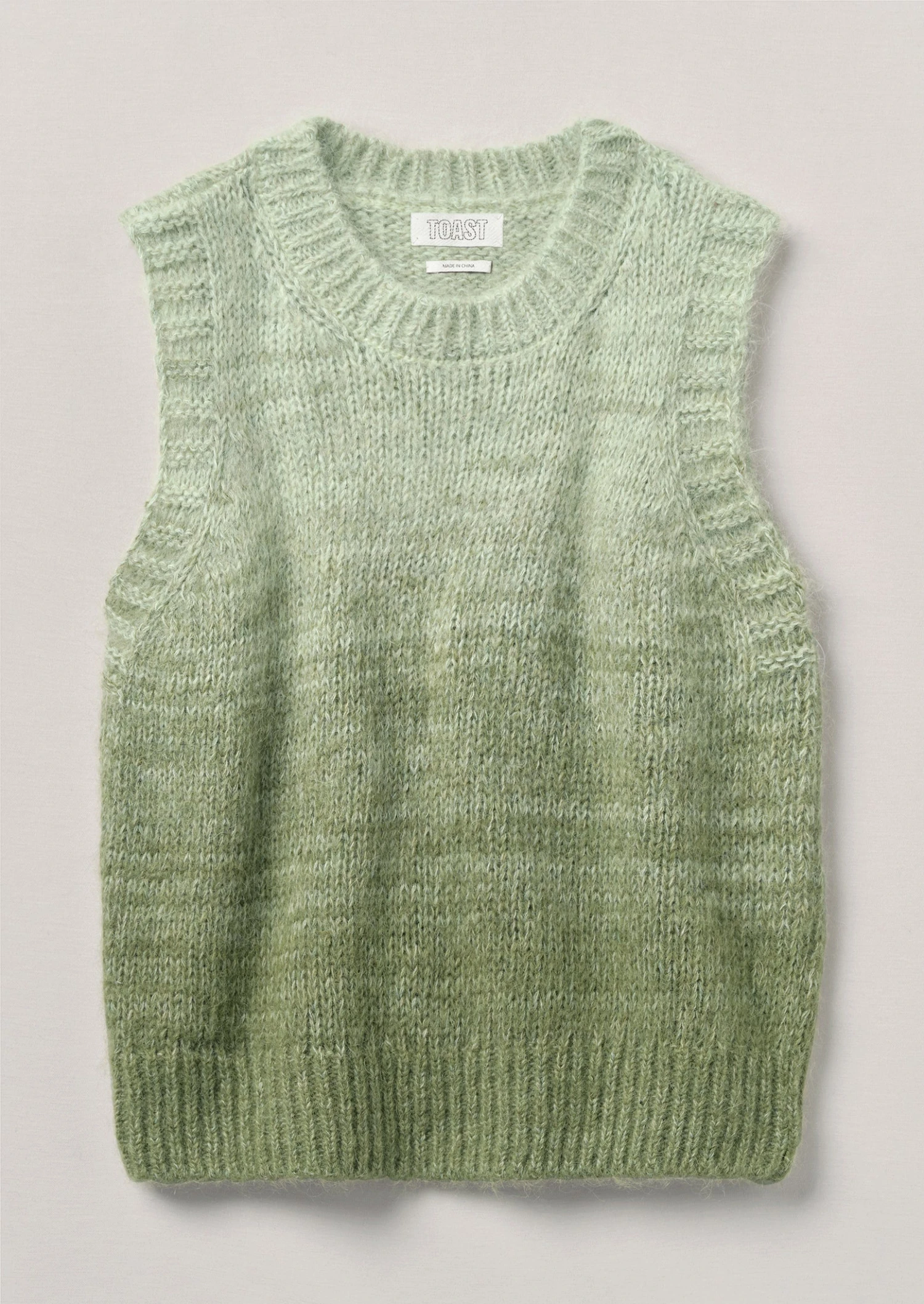 Our ombré knitted tank runs from light to dark tones towards the mid-hip hem. Knitted from a lofty wool blend containing mohair and alpaca for tactility and finished with ribbed edges.