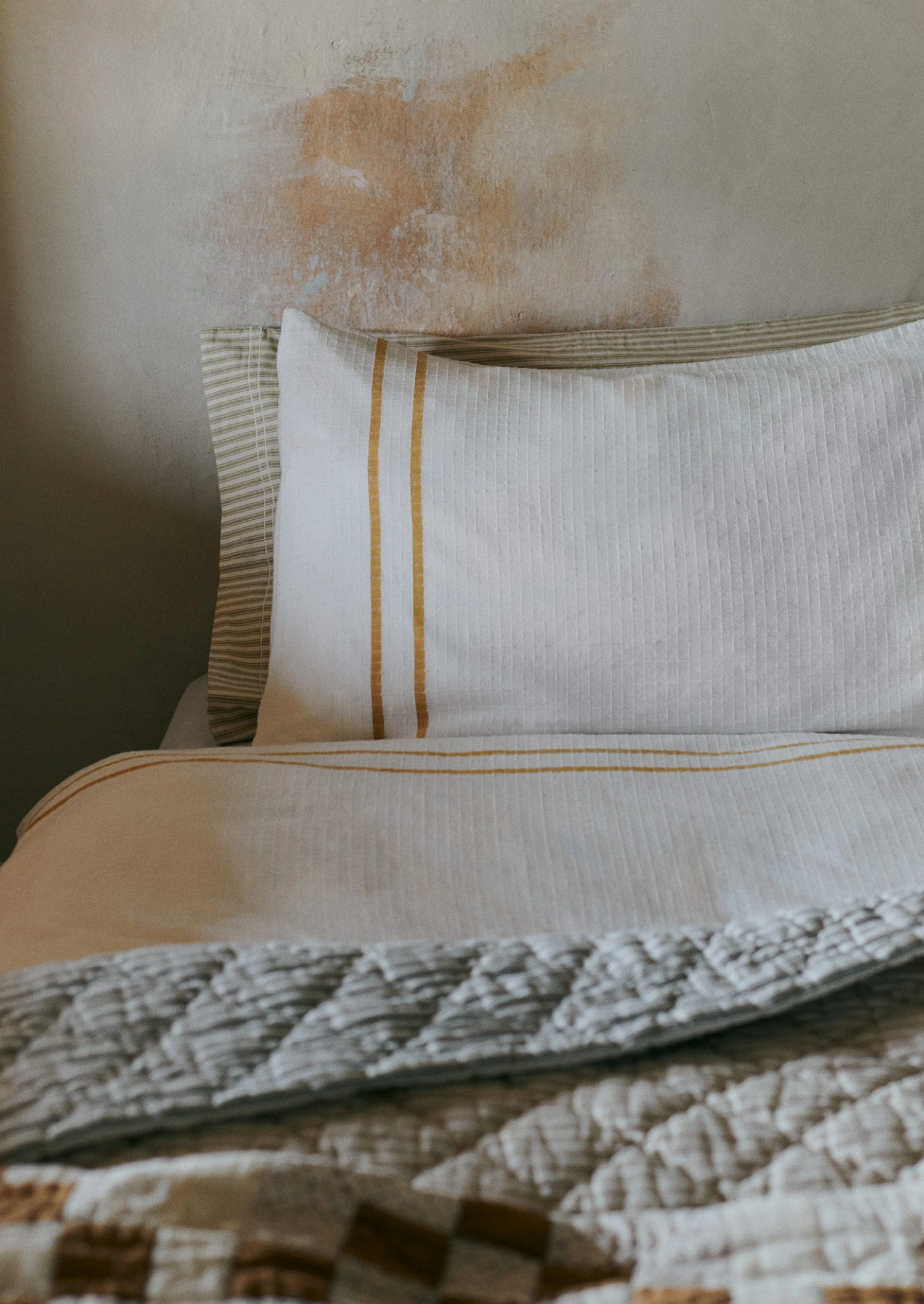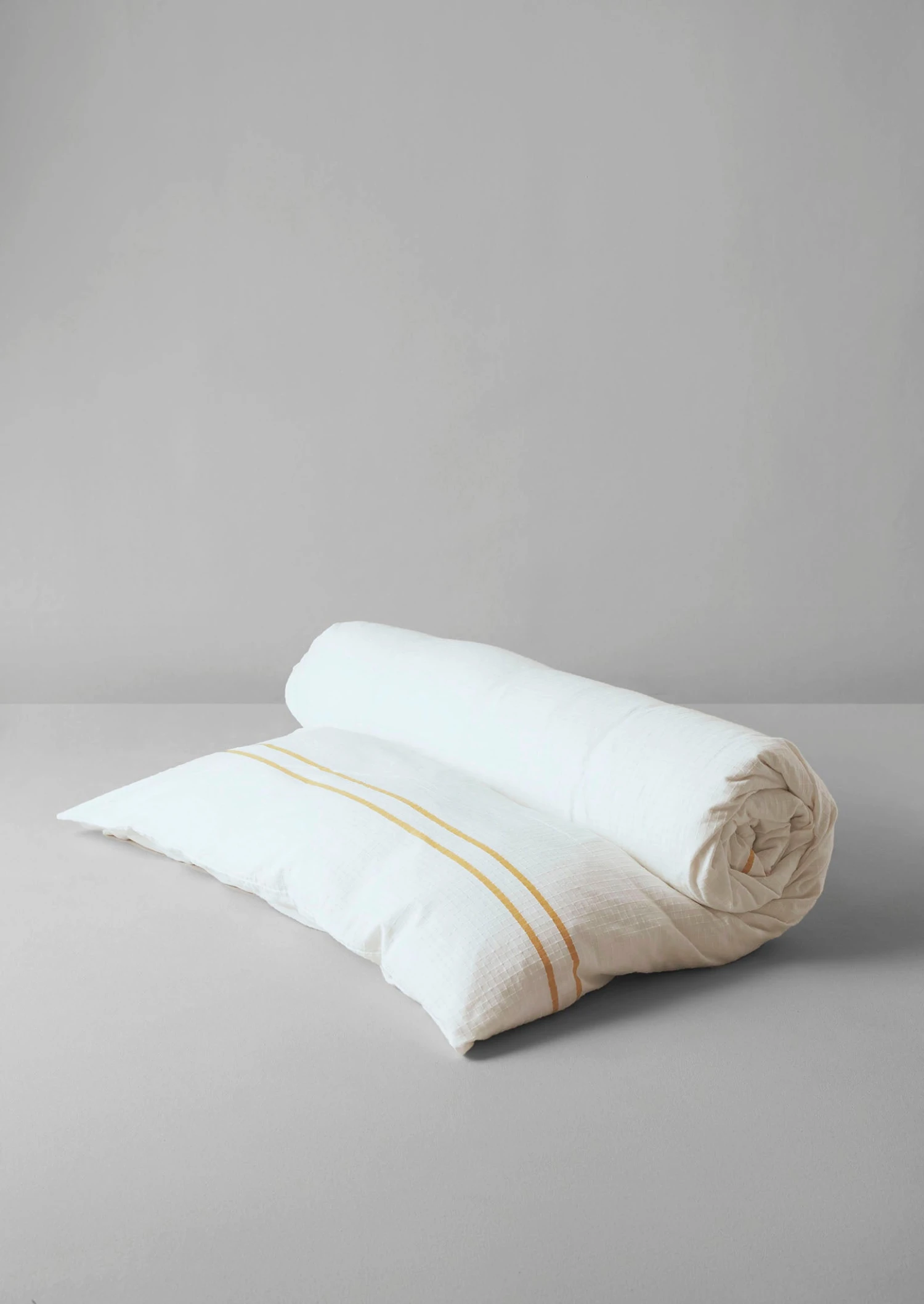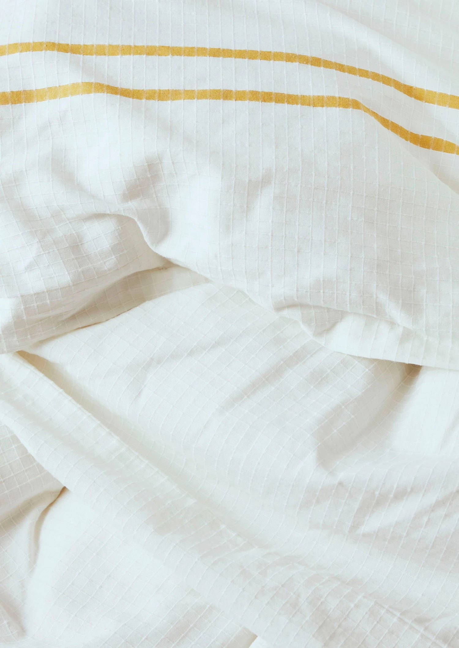 Soft organic cotton duvet cover, woven with a raised check to give texture, then washed for a relaxed finish. With contrasting stripes and accented by mother-of-pearl buttons. Our organic cotton bed linen has been part of our House&Home collection at TOAST for over ten years. With wash and wear the bed linen will only become softer and more supple.