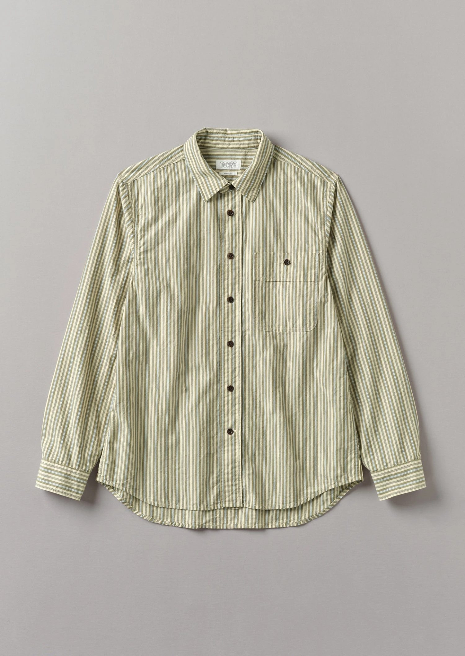 Our Otis shirt is crafted from striped organic cotton with a gently crinkled, worn-in finish. Cut to a straight shape with a buttoned chest patch pocket, falling to a curved hem. Part of our Menswear collection.
