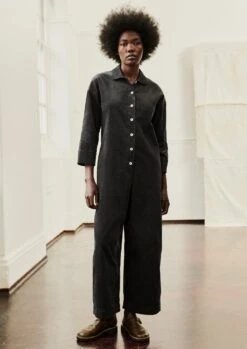 Wide Leg Organic Cord Jumpsuit | Charcoal