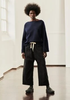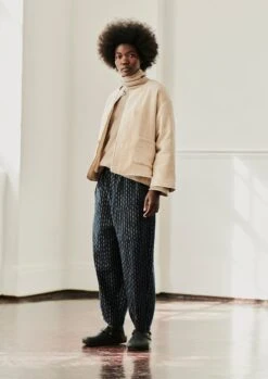 Polka Stripe Ikat Fisherman Trousers | Slate/Ecru