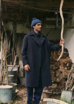 Double Breasted Wool Overcoat | Navy Melange