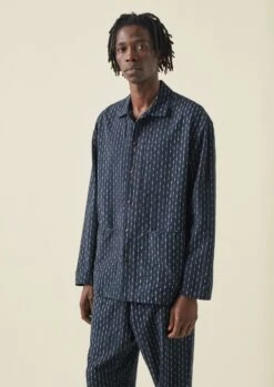Cotton Ikat Lounge Shirt | Slate/Ecru
