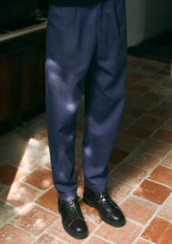 Duncan Exaggerated Tapered Trousers | Delft Blue