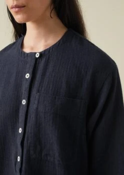 Brushed Cotton Linen Herringbone Shirt | Midnight