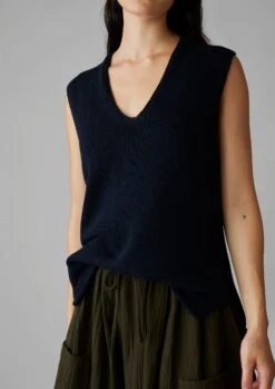 V-Neck Linen Cotton Knitted Tank | Dark Navy