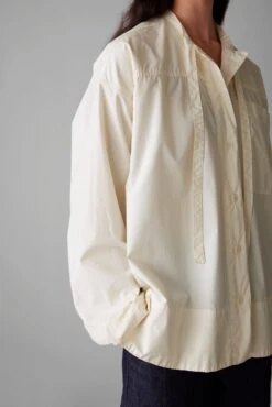 Tie Neck Cotton Poplin Shirt | Smock Blue