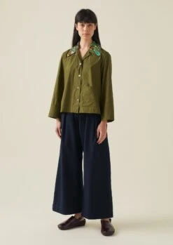 Hand Beaded Poplin PJ Shirt | Rich Olive