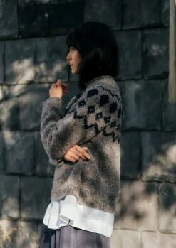 Graphic Yoke Donegal Sweater | Fossil Grey/Navy