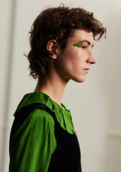 Ruffle Collar Crinkle Twill Shirt | Spruce