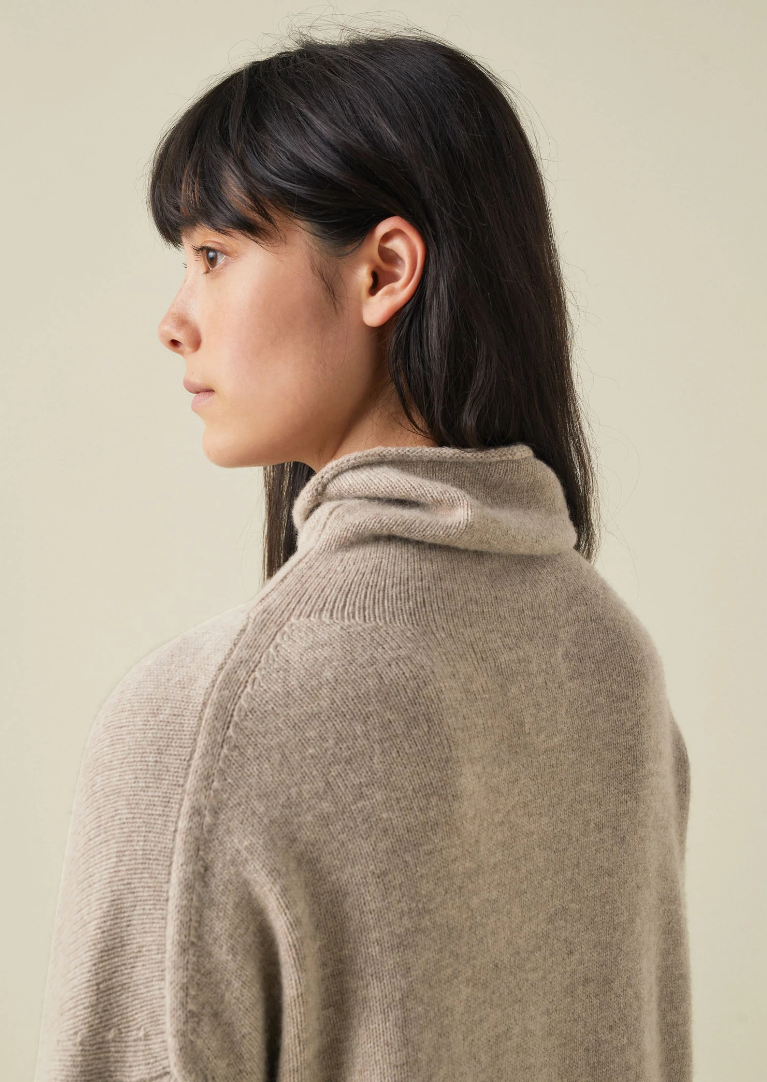 A loose roll neck brings an ease to our sweater, which is crafted from wool and recycled cashmere. Shaped to a relaxed silhouette with effortless dropped sleeves, then finished with rolled edges at the neck and cuffs.