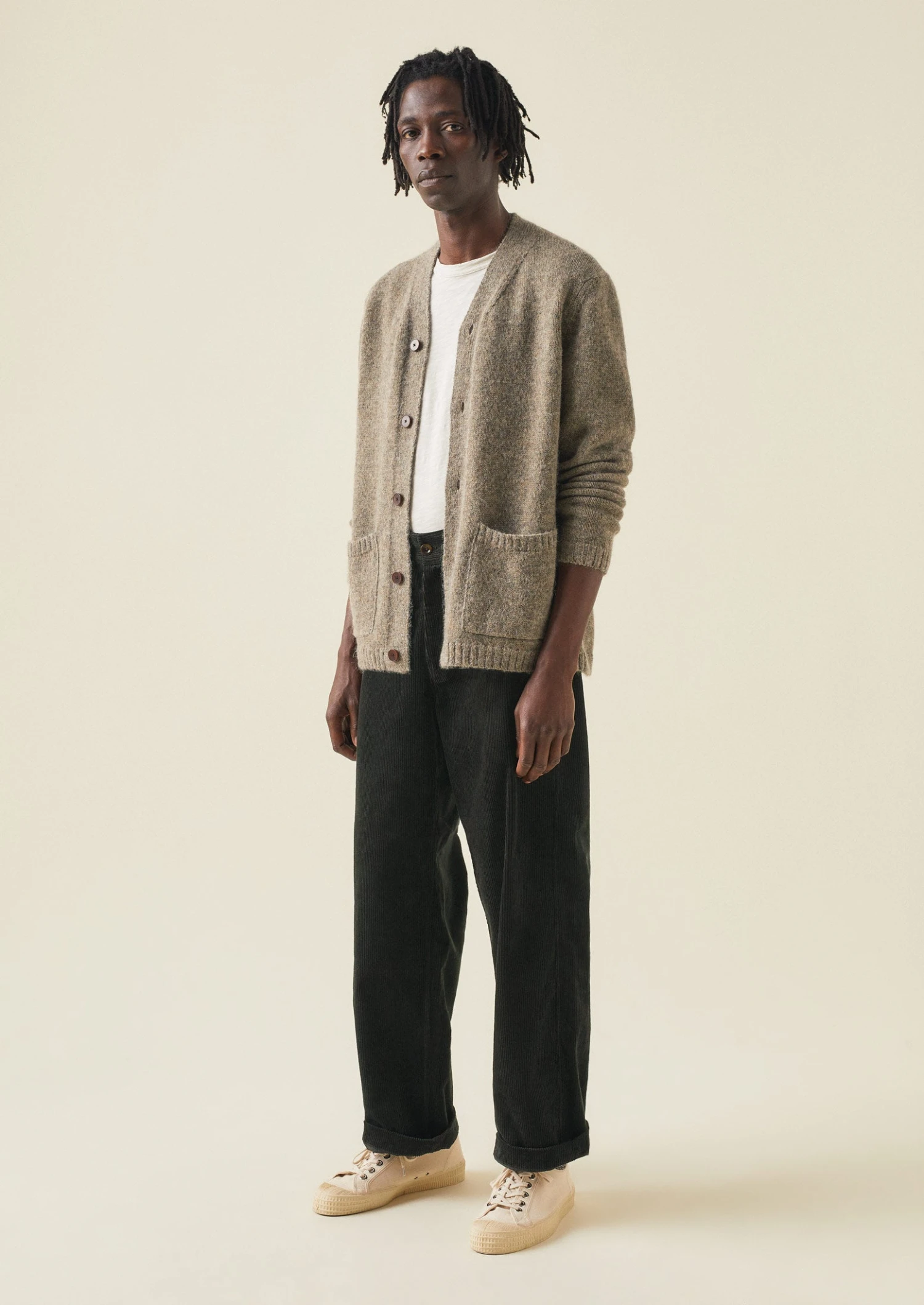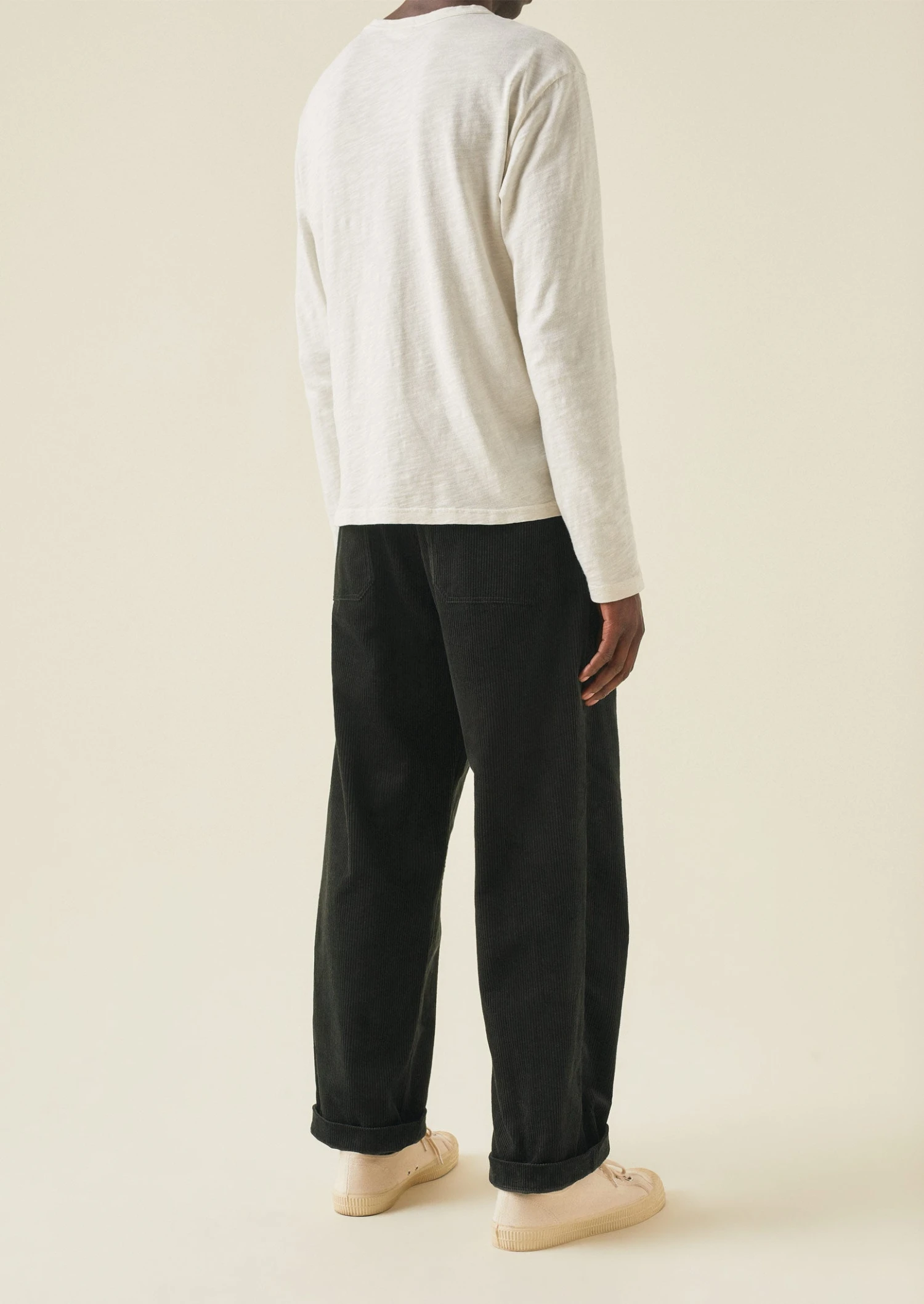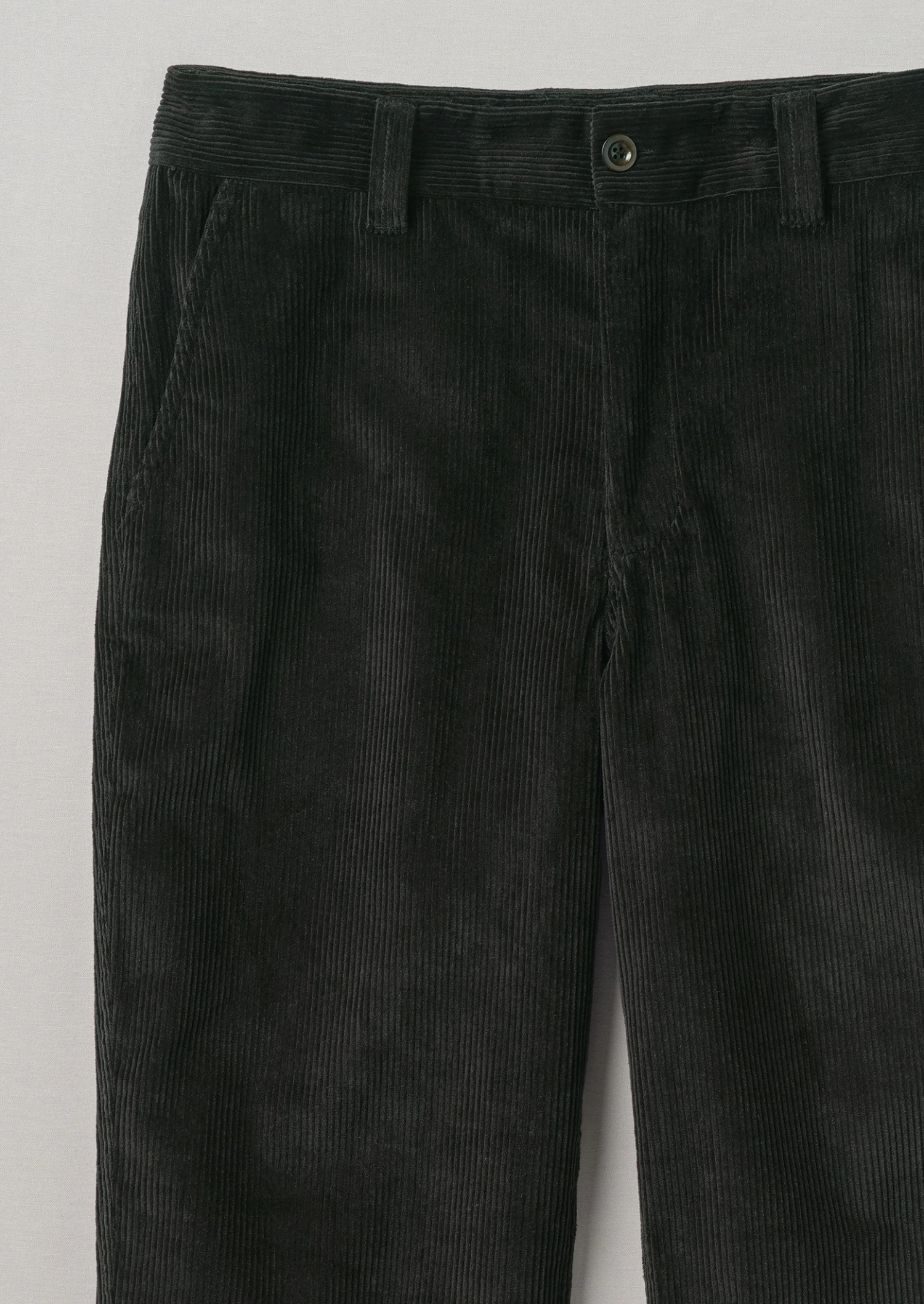 Organic cotton cord. Straight legs. Slanted side pockets. Back buttoned patch pockets. Front corozo button and zip.