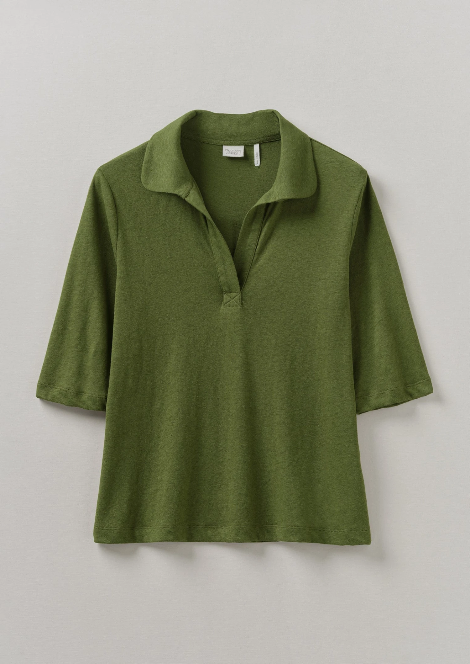 Our tee features a rounded open collar, complementing the relaxed feel of the slubbed cotton and hemp-blend jersey. Crafted in Portugal to a regular shape with elbow-length sleeves, falling to a mid-hip length.