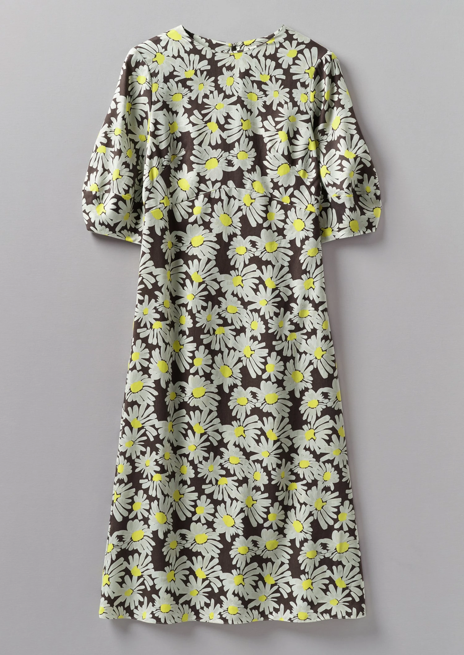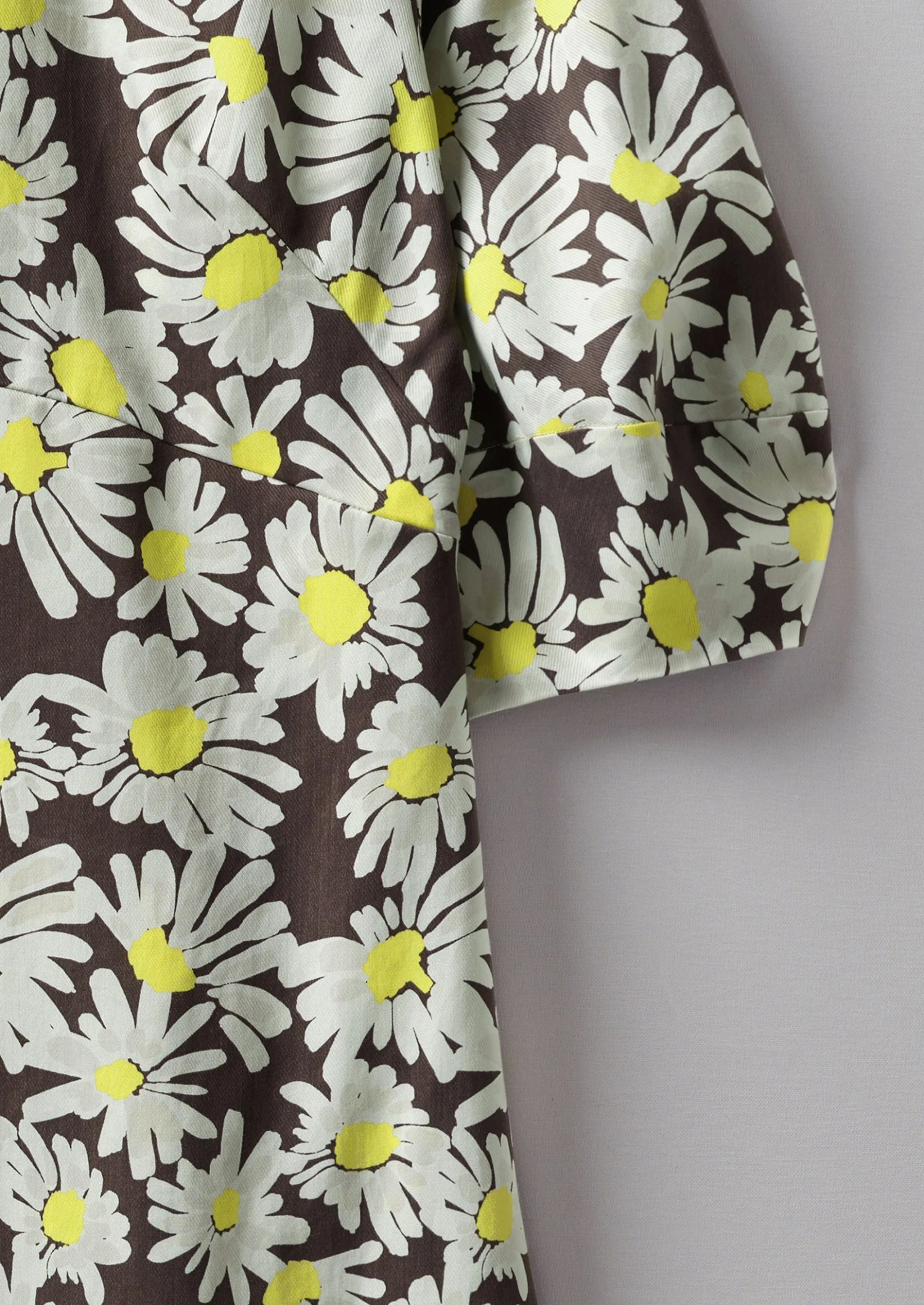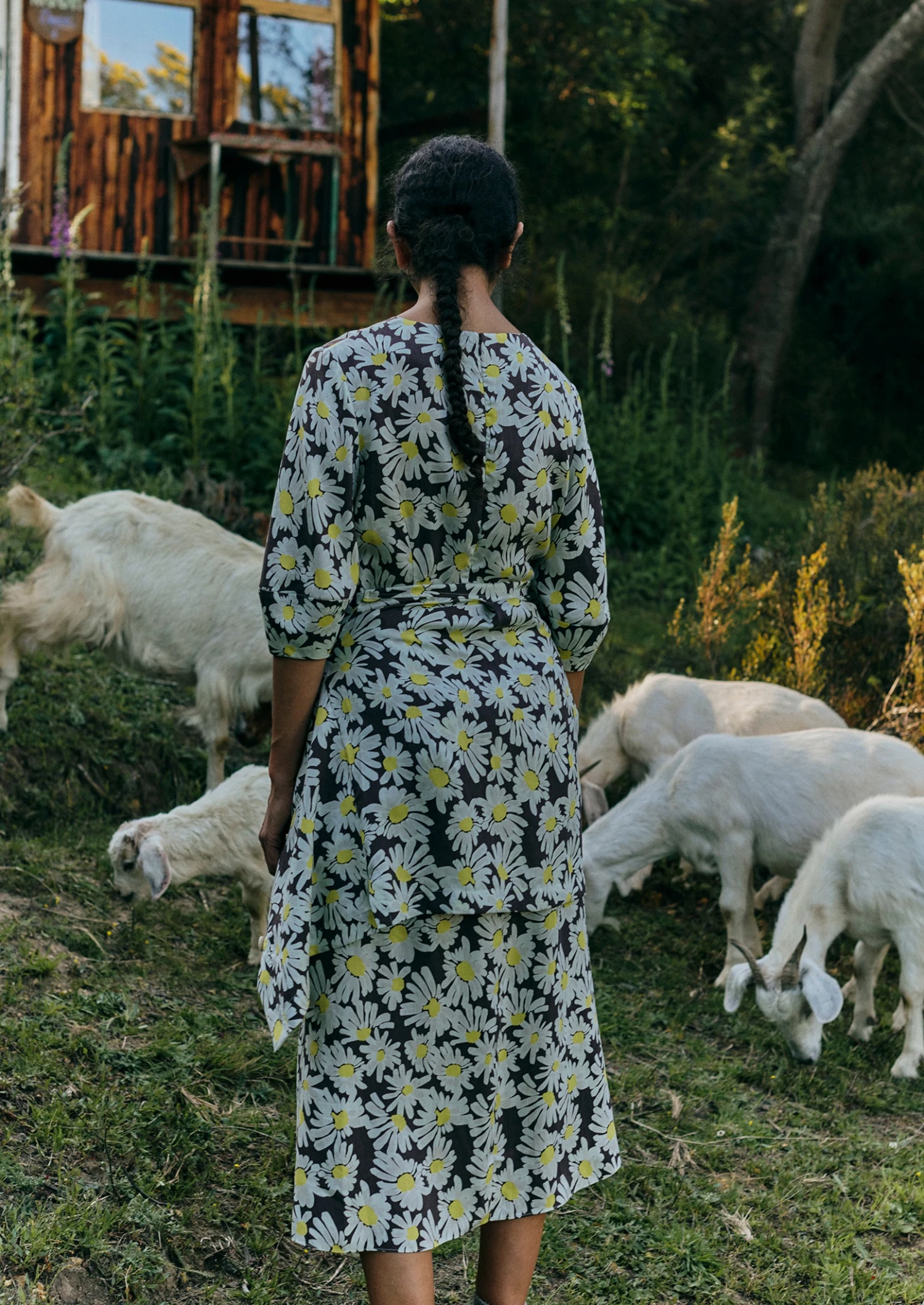 Bright accents bring a modern inflection to the nostalgic daisy print patterning our dress. Crafted from crepe derived from wood pulp to a fluid shape with a curved waist seam, then finished with a concealed back zip.