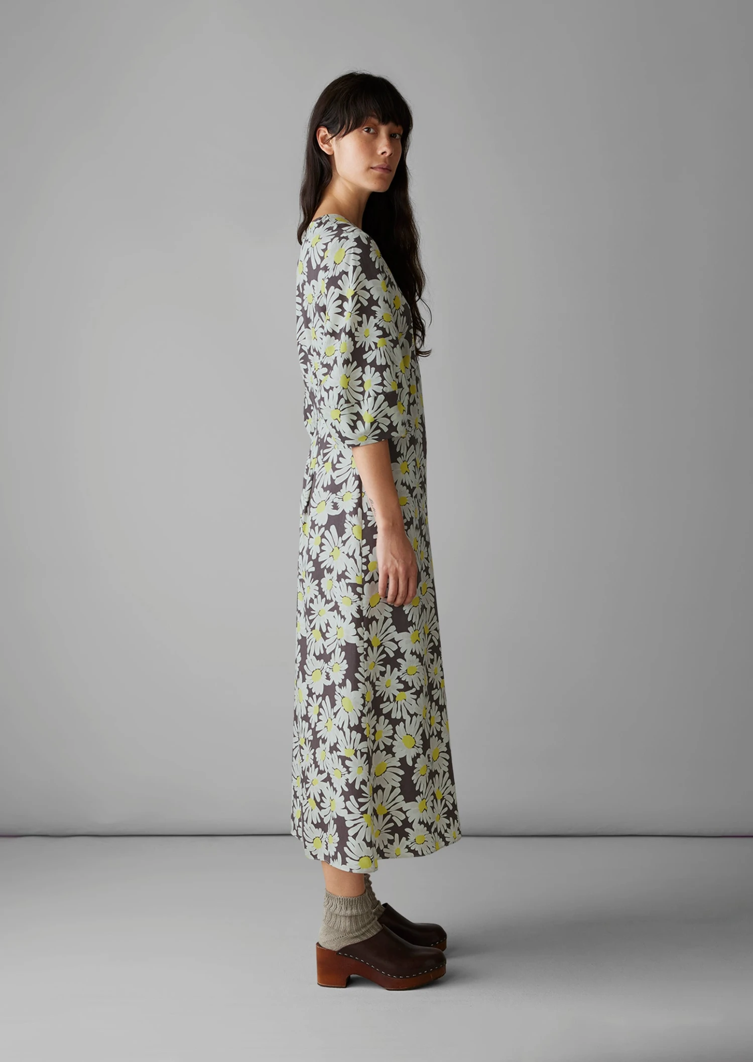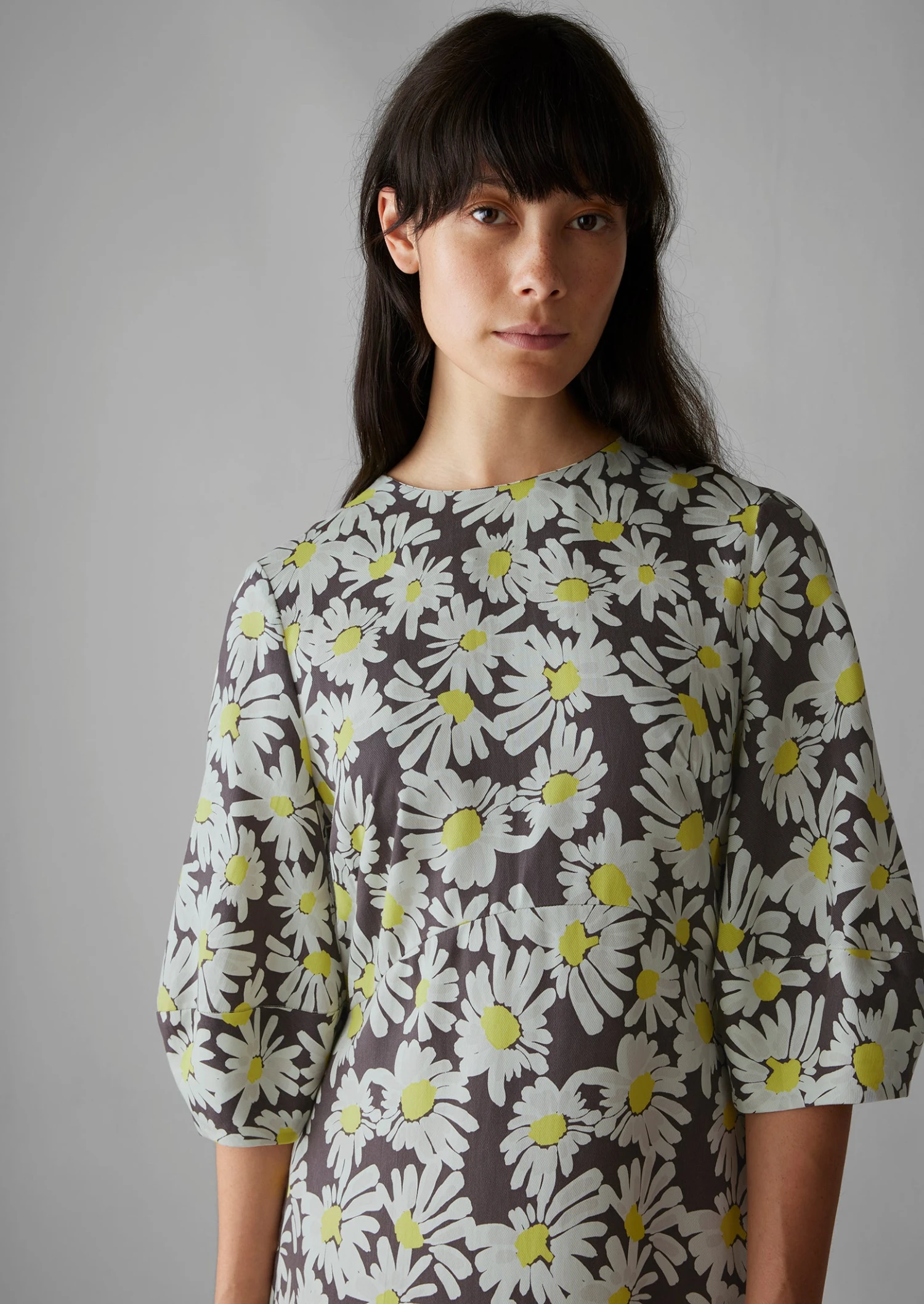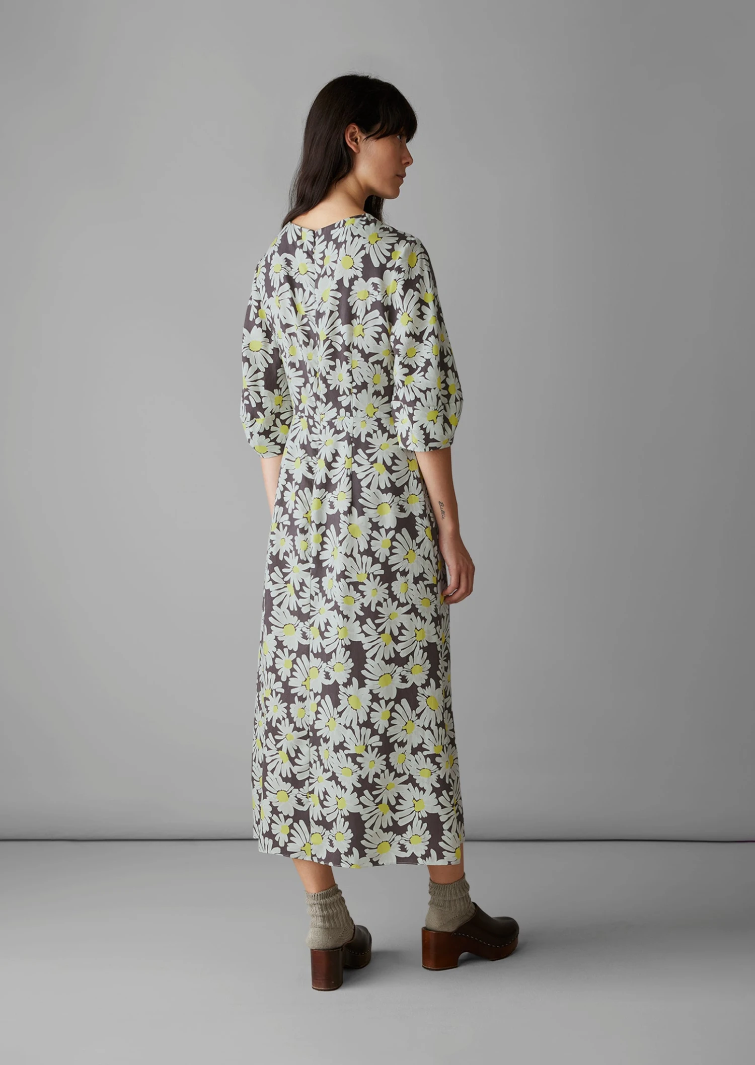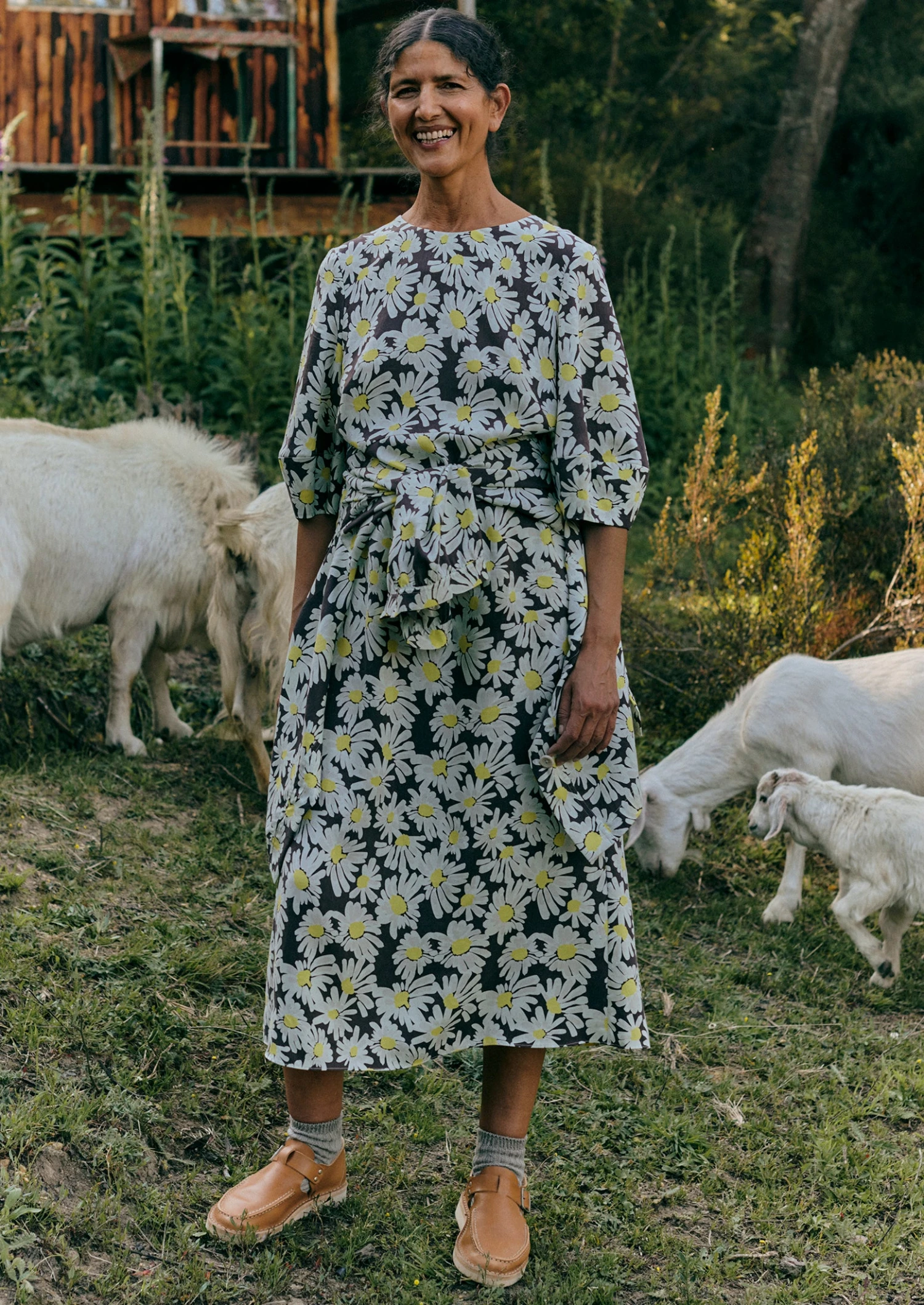 Bright accents bring a modern inflection to the nostalgic daisy print patterning our dress. Crafted from crepe derived from wood pulp to a fluid shape with a curved waist seam, then finished with a concealed back zip.
