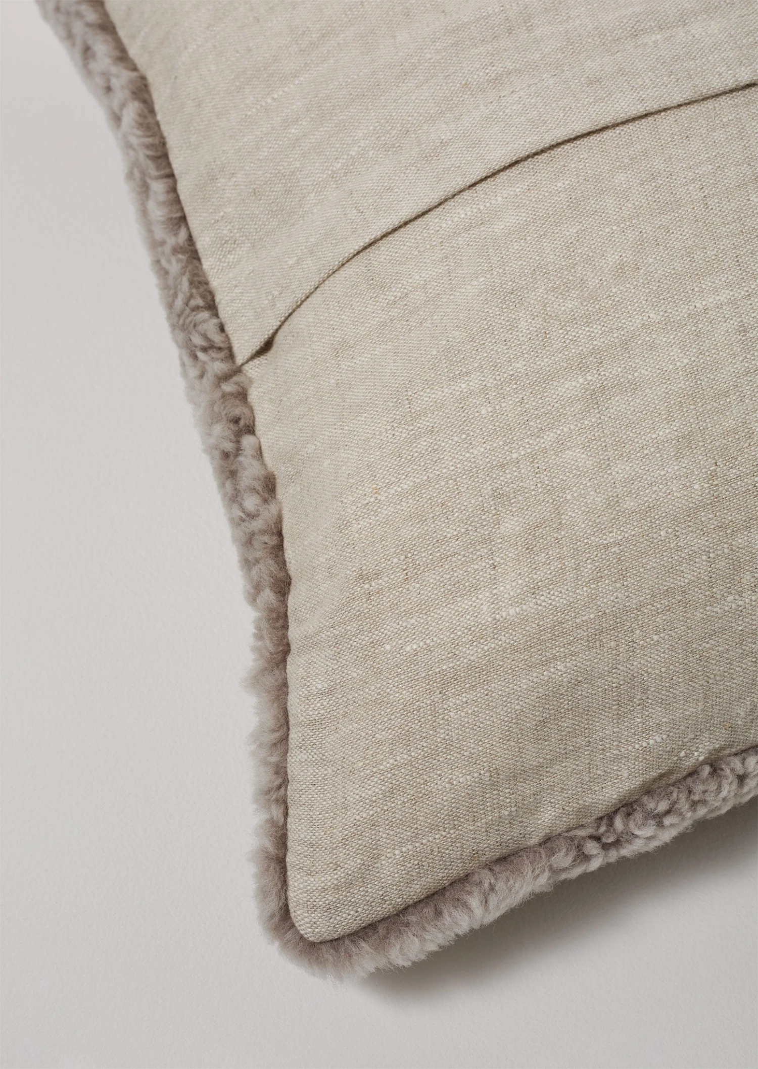 Curly sheepskin, incredibly soft with a tight curl. Each sheepskin is specially sorted and selected, and cut by hand in Somerset. Sheepskin front, backed in linen from Lithuania. Envelope closure. To fit a size 46 x 46cm Wool Cushion Pad.