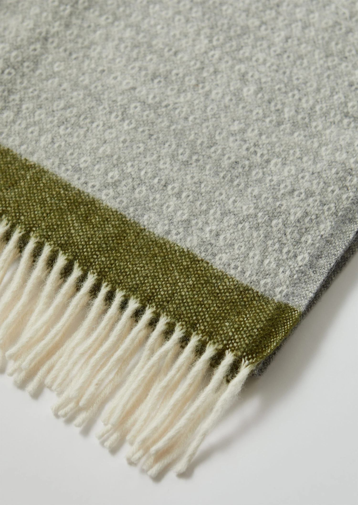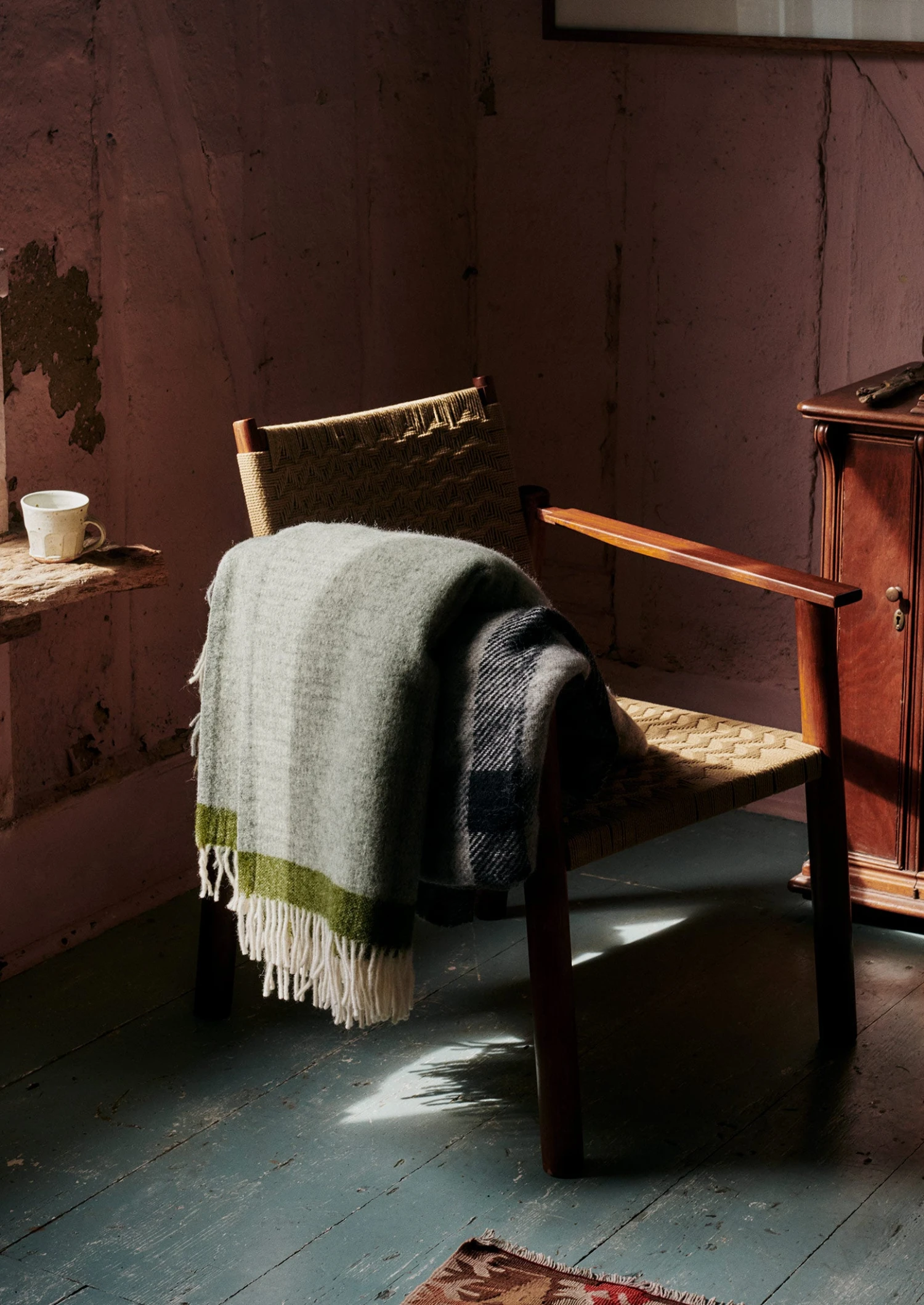 Soft, cosy blanket made from lambswool which is traceable to each specific sheep farm in New Zealand. Crafted by Swedish family-run business Klippan, which traces back to 1879. The wool is spun, dyed and woven in the same factory in Europe. Woven with a diamond pattern, then finished with a contrasting stripe at the fringed ends.