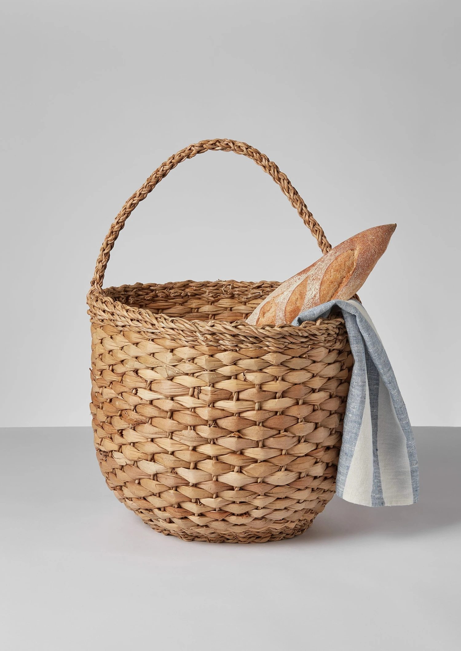 Rounded basket handwoven by artisans supported by Fair Trade organisations. Maison Bengal utilises locally grown natural materials and develops renowned traditional skills. Crafted to a simple shape with a sturdy handle, ideal for a picnic.