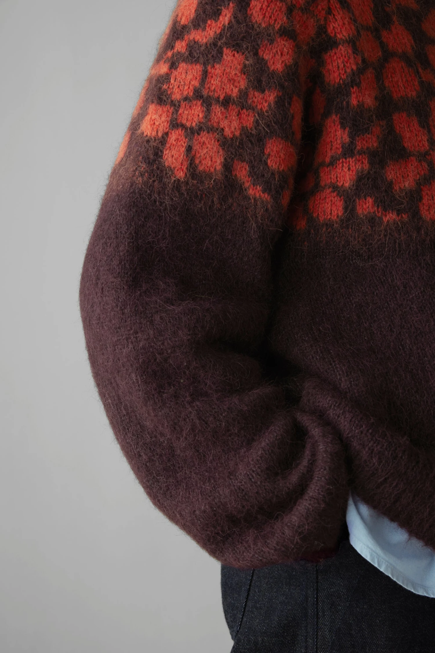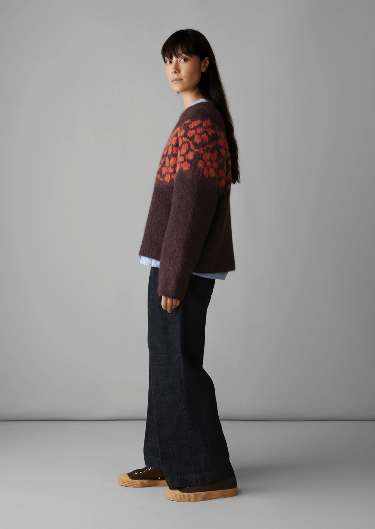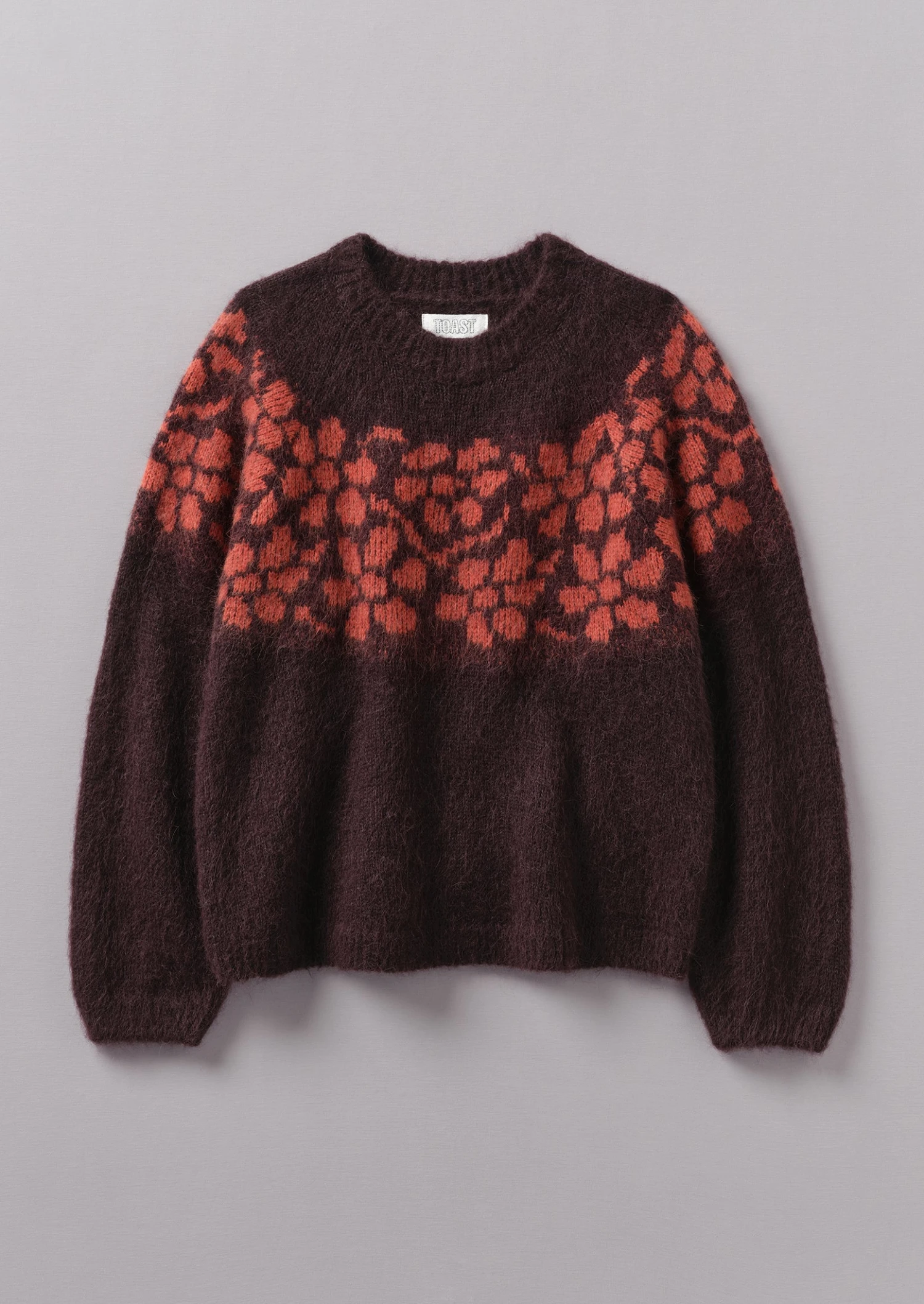 A trailing floral jacquard pattern runs across the yoke of our sweater, inspired by the tradition of floral folk art. Knitted from a lofty blend of alpaca, cotton and wool to an easy silhouette with a shaped yoke.