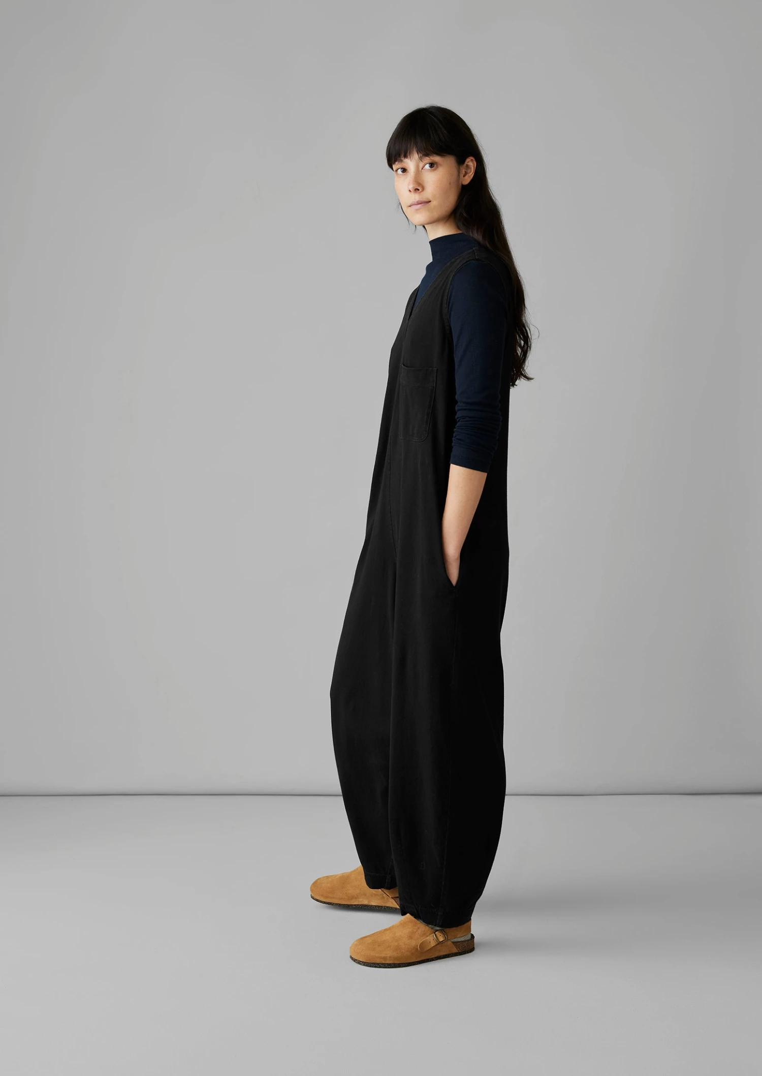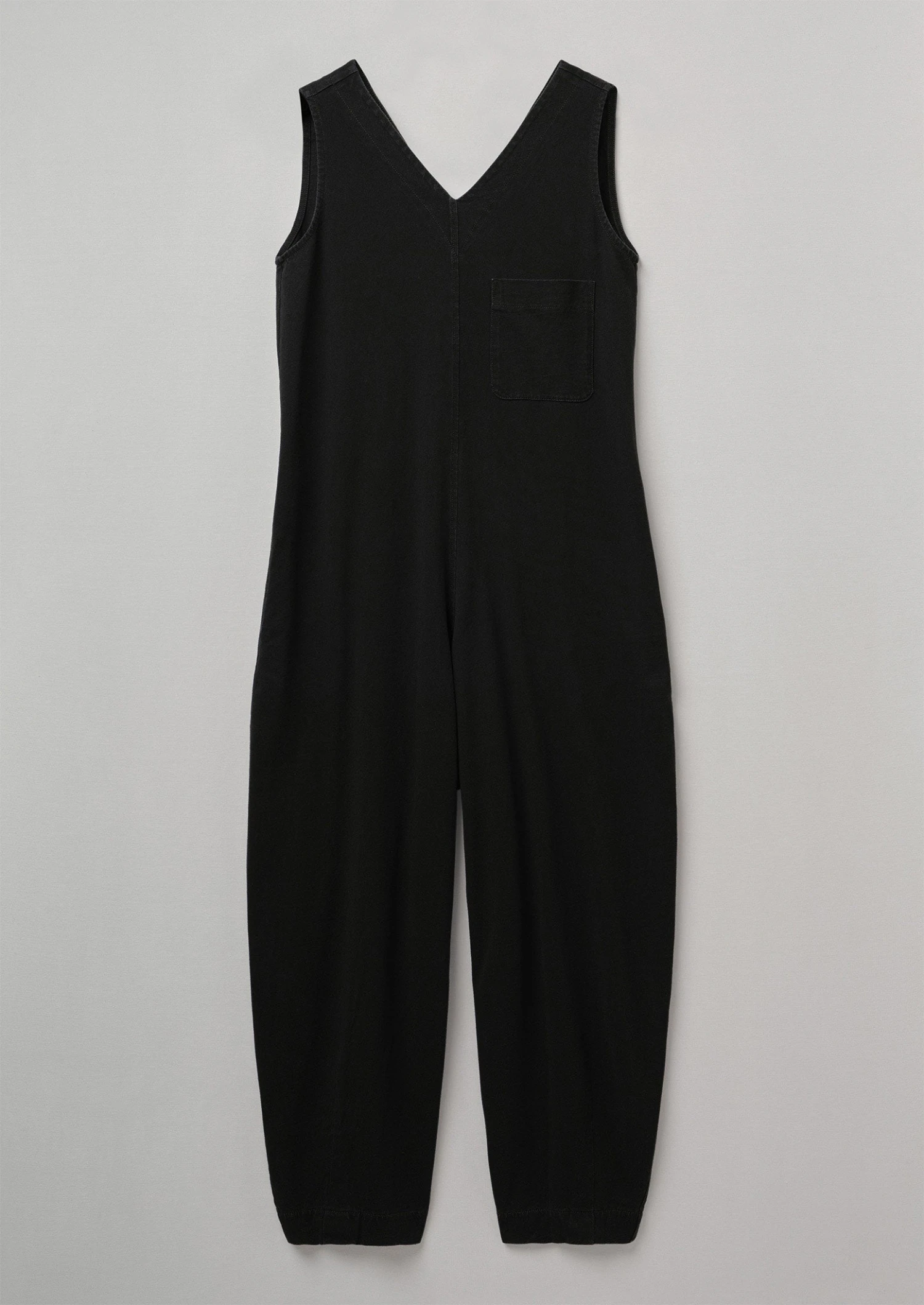 Our easy jumpsuit tapers in at the ankle-skimming cuffs for a relaxed silhouette. Crafted from cotton jersey, turning to reveal a corozo button half placket beneath the V back. Inspired by our Lydia dress, which has been an integral part of our loungewear range for a decade.