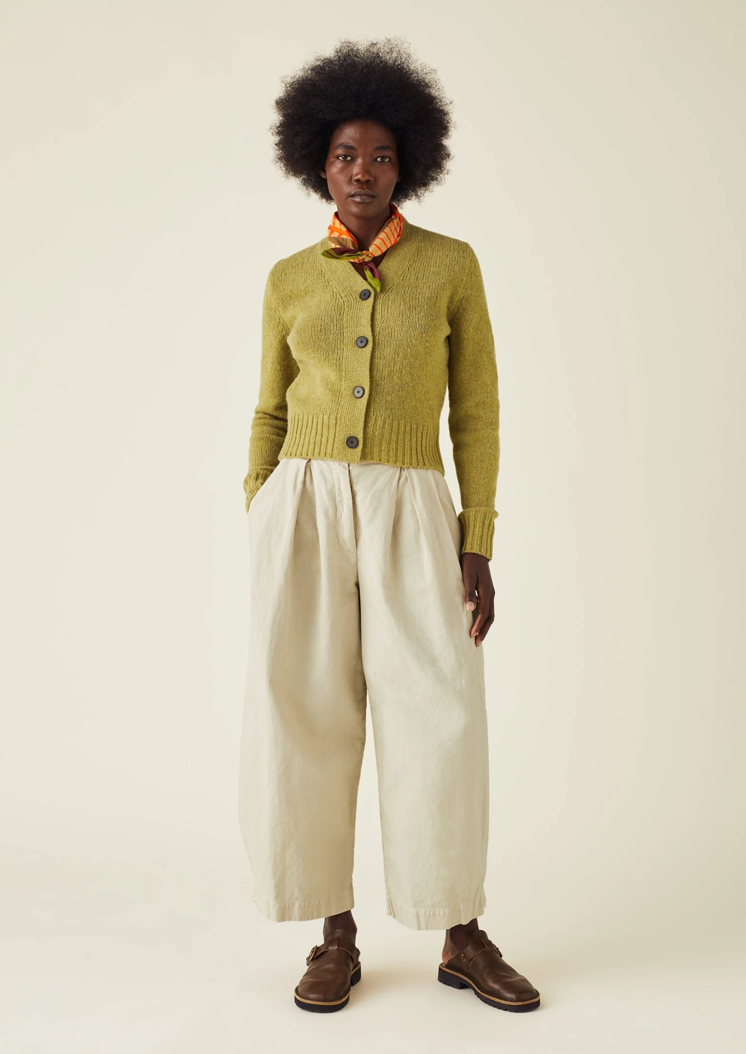 A high V-neck and wide placket underscore the vintage influences of our cardigan. Knitted in Turkey from heathered wool yarn also spun in the country to a neat shape, sitting at the top of the hip.