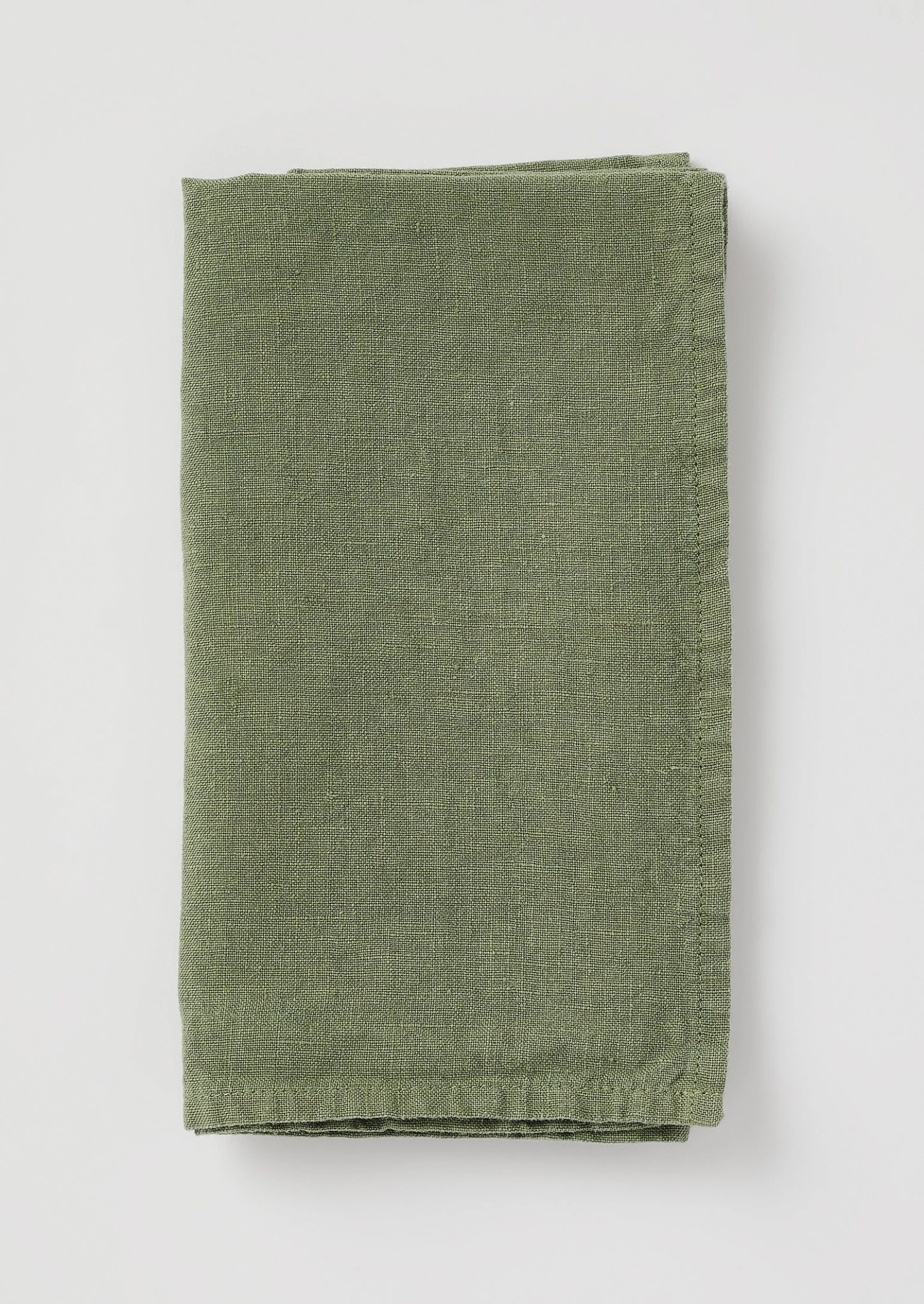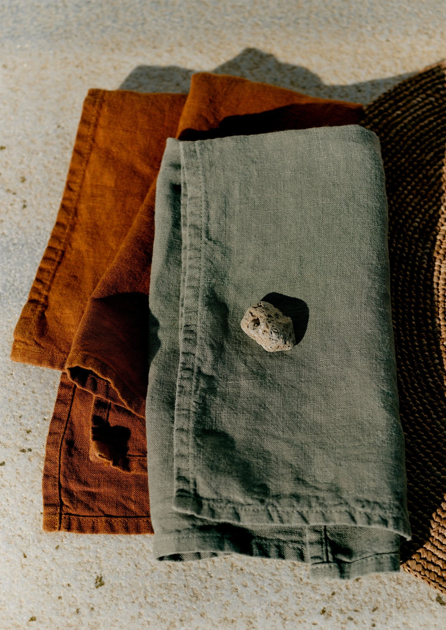 Simple napkin crafted from mid-weight, supple washed linen from the Baltic region. Neat, double-stitched edges.