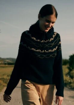 Lofty Alpaca Blend Knitted Poncho | Navy
