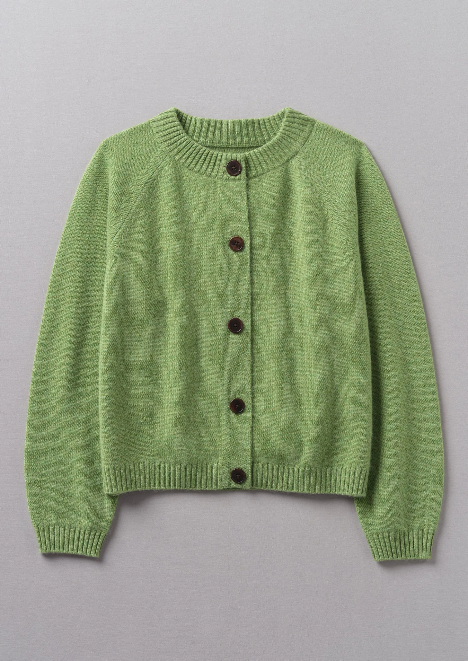 Our cardigan is crafted from wool blended with recycled cashmere for softness. Knitted to an easy shape with raglan sleeves, tapering gently at the cuffs, and falling to a mid-hip length. Wool and recycled cashmere blend. Easy shape. Ribbed crew neck. Wristbone-length raglan sleeves. Mid-hip length. Integral ribbed cuffs and hem. Corozo buttons.